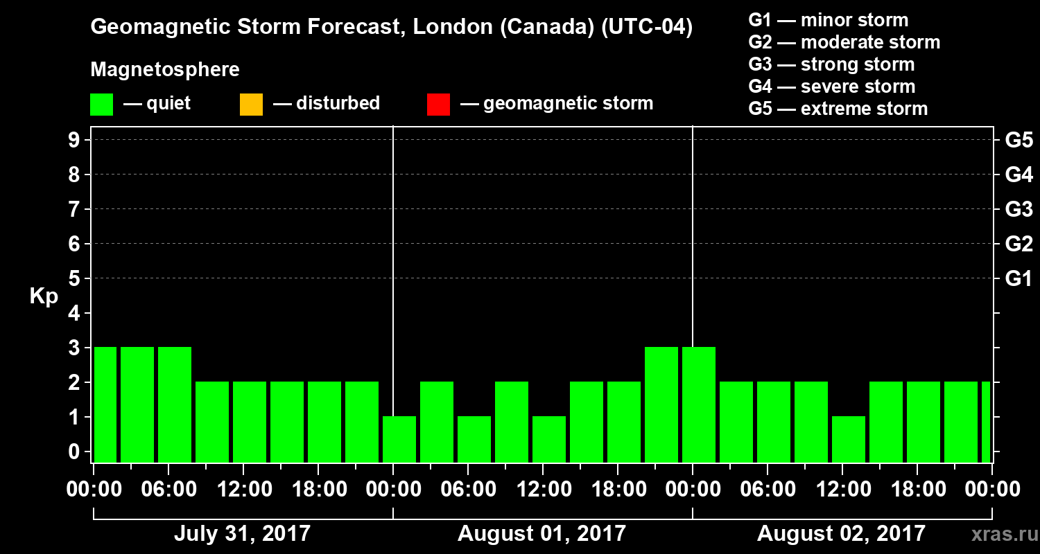 Geomagnetic storm forecast in London (Canada) for Jul 31, 2017