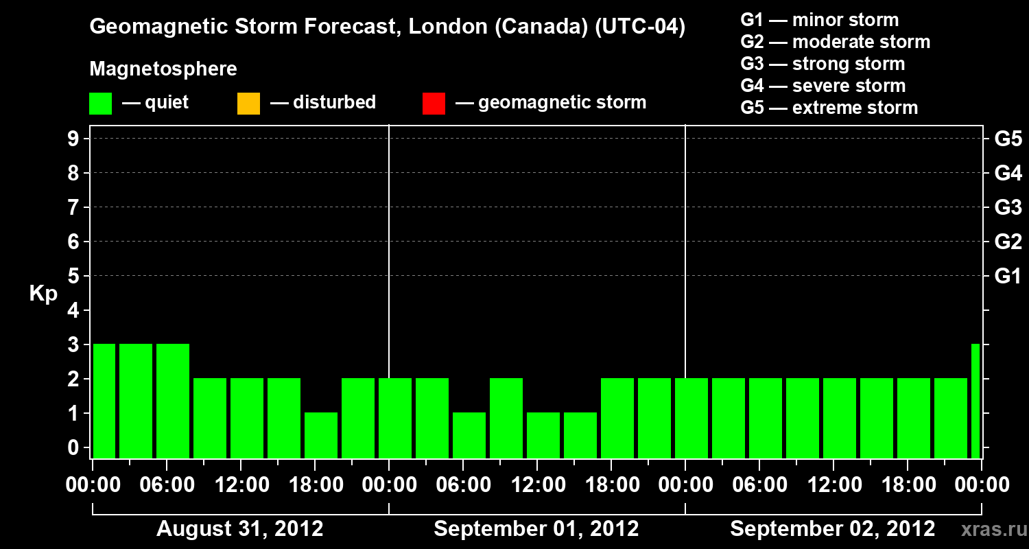 Geomagnetic storm forecast in London (Canada) for Aug 31, 2012