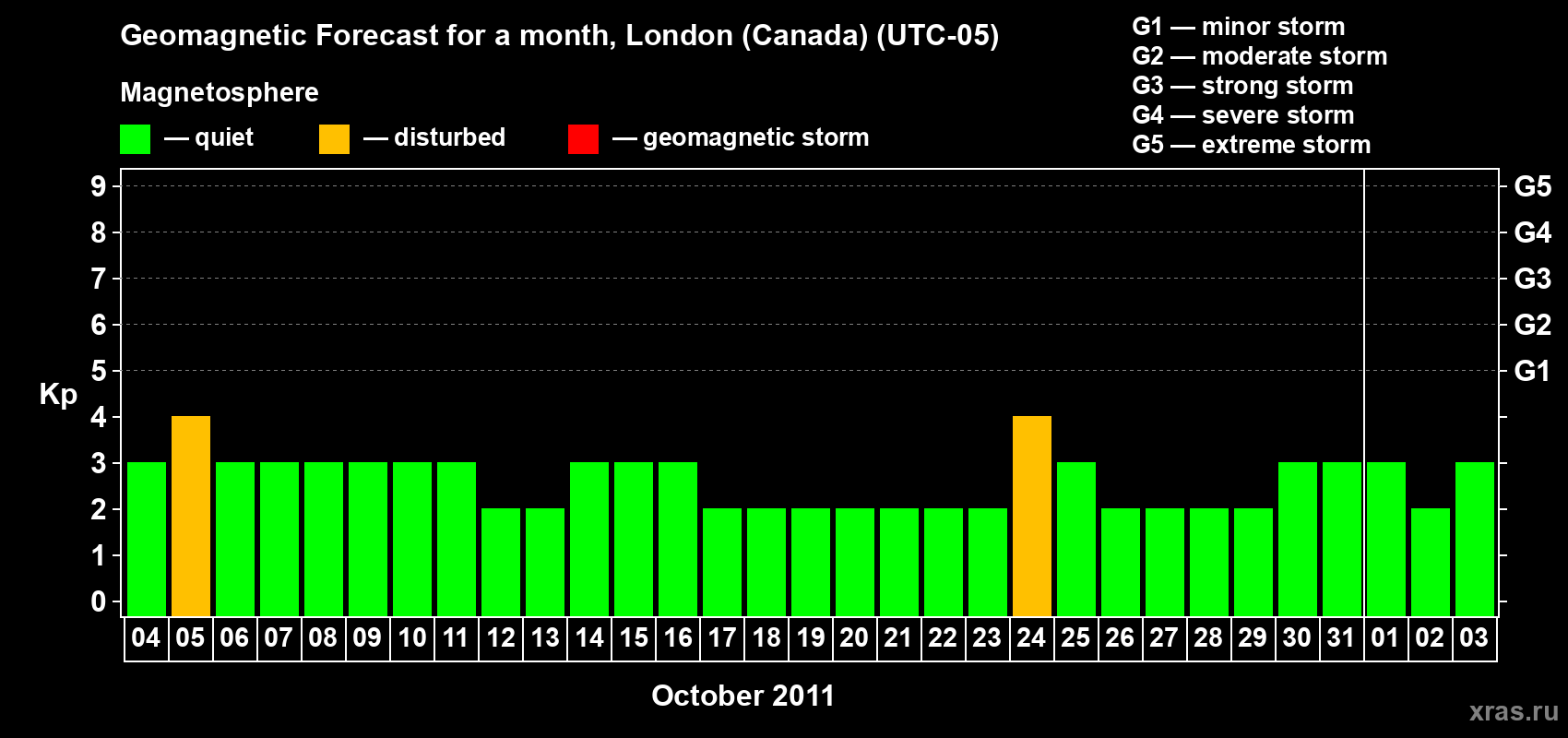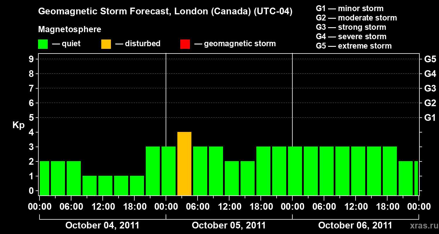 Geomagnetic storm forecast in London (Canada) for Oct 04, 2011