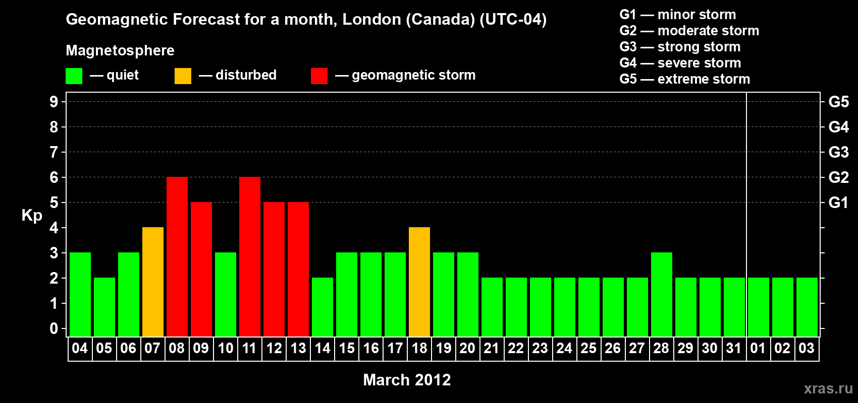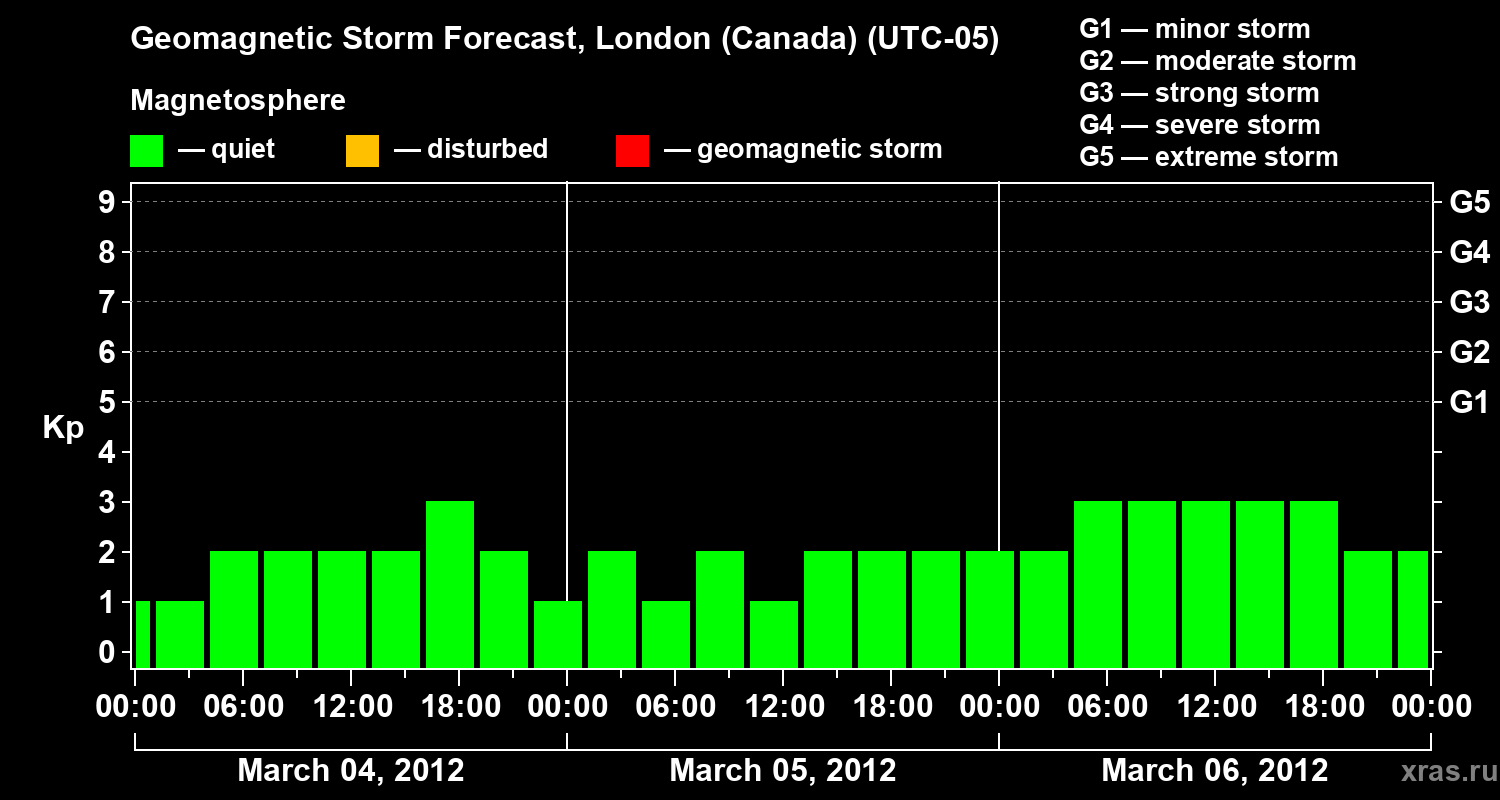 Geomagnetic storm forecast in London (Canada) for Mar 04, 2012