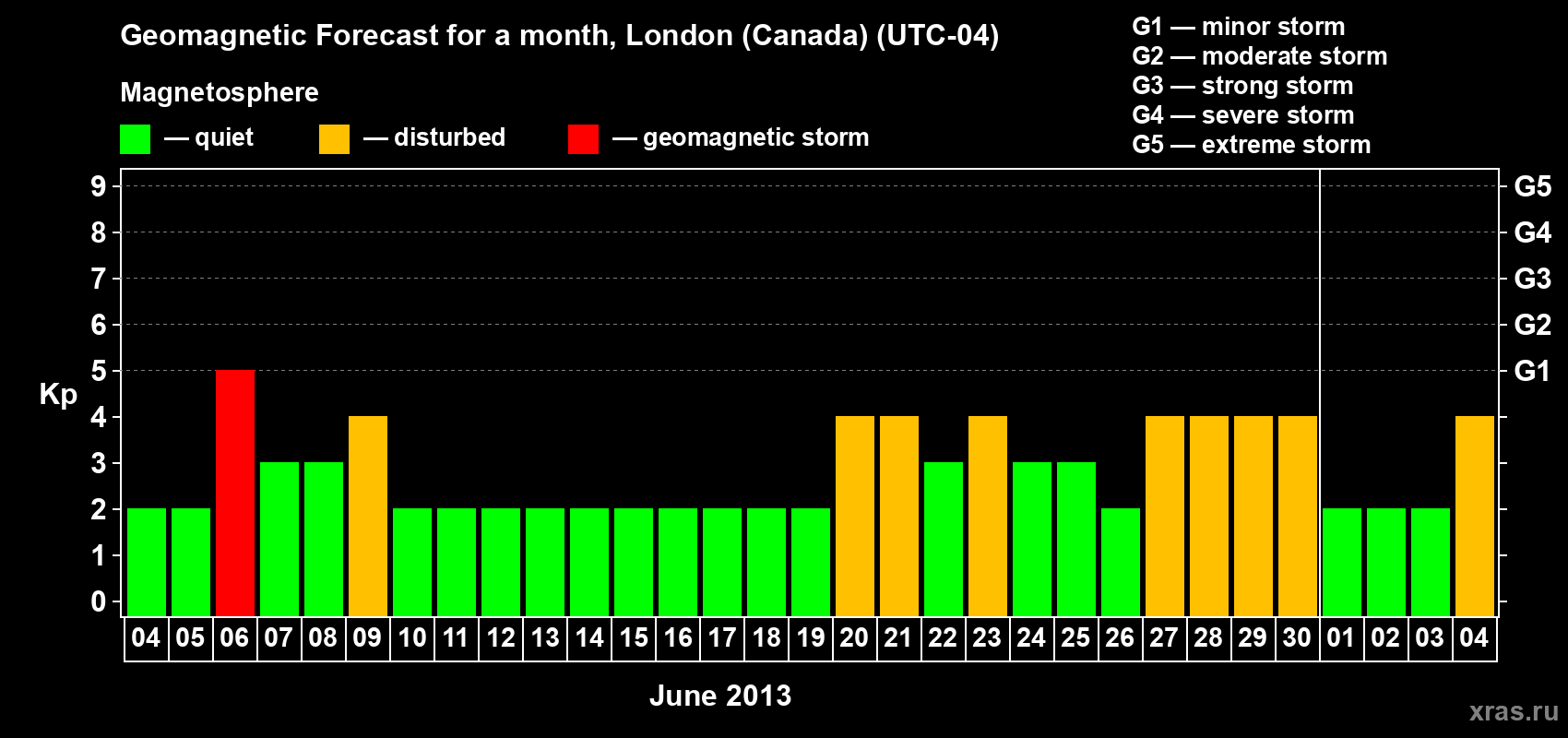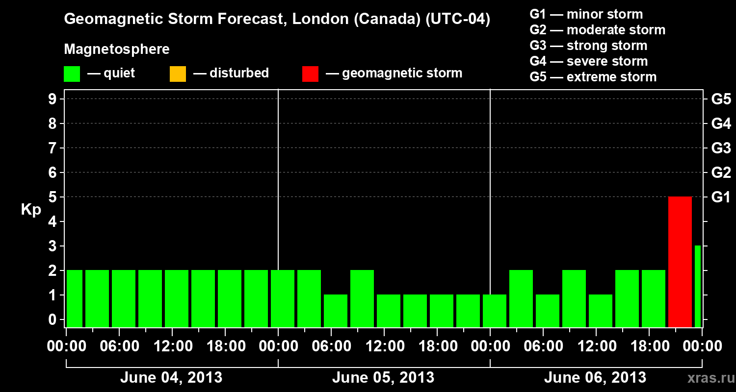 Geomagnetic storm forecast in London (Canada) for Jun 04, 2013