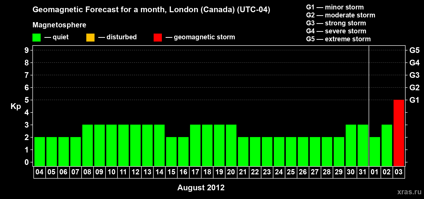 Geomagnetic storm forecast in London (Canada) for Aug 04, 2012