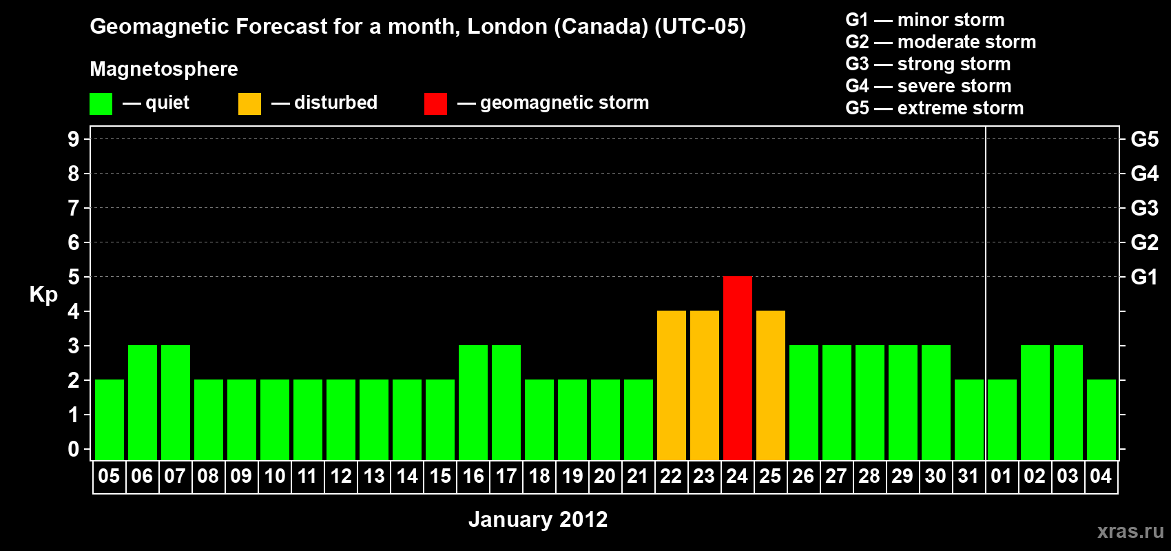 Geomagnetic storm forecast in London (Canada) for Jan 05, 2012