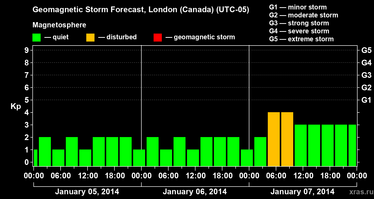 Geomagnetic storm forecast in London (Canada) for Jan 05, 2014