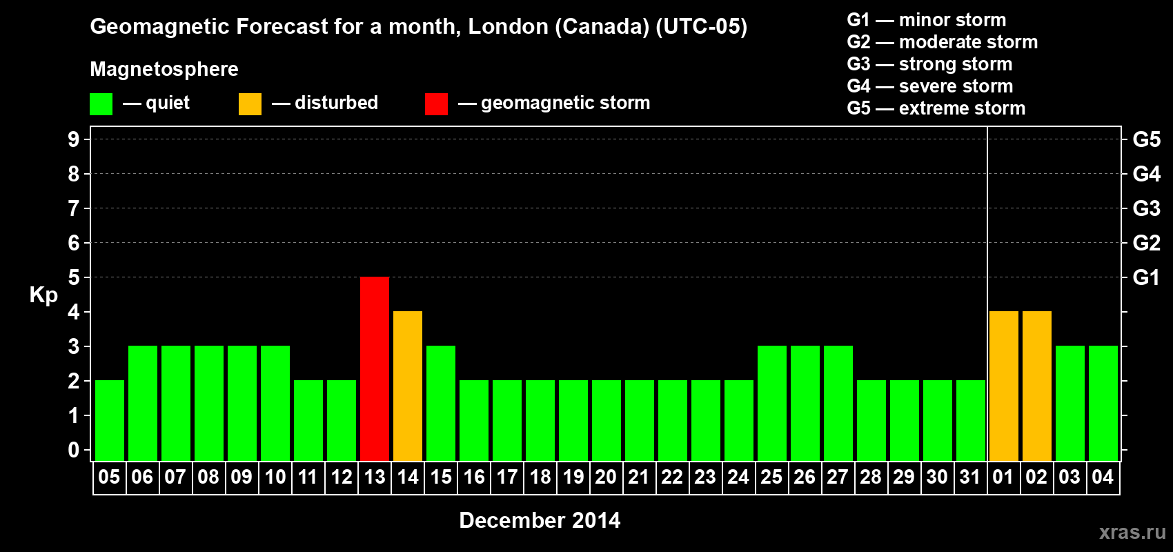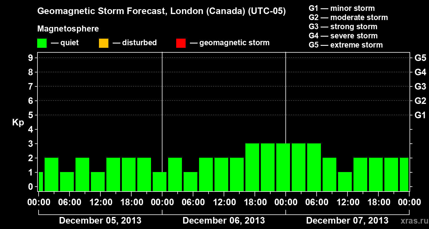 Geomagnetic storm forecast in London (Canada) for Dec 05, 2013