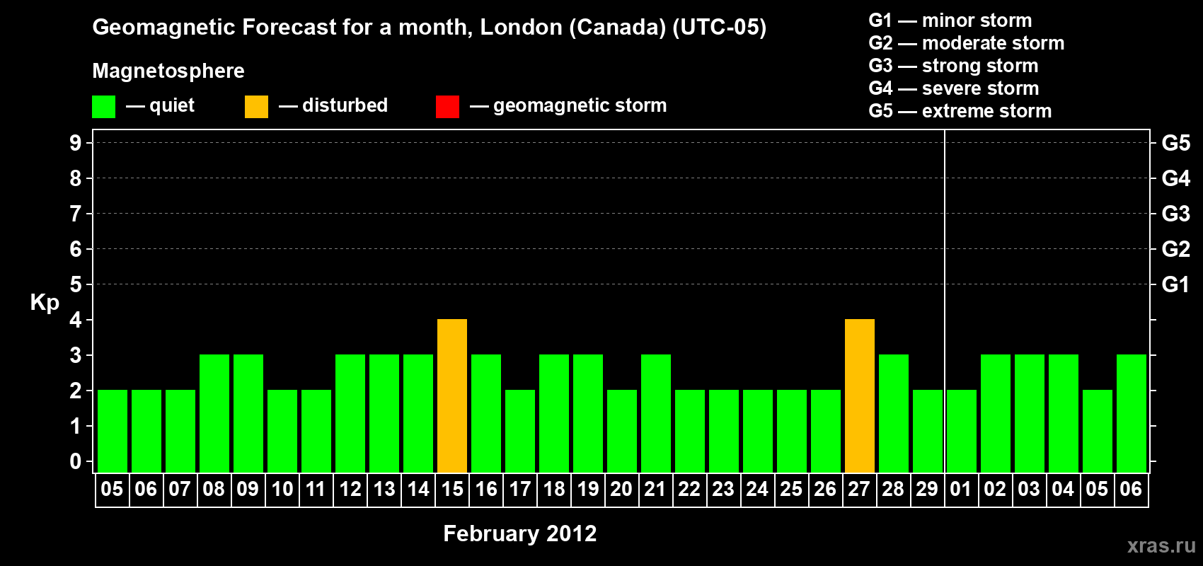 Geomagnetic storm forecast in London (Canada) for Feb 05, 2012