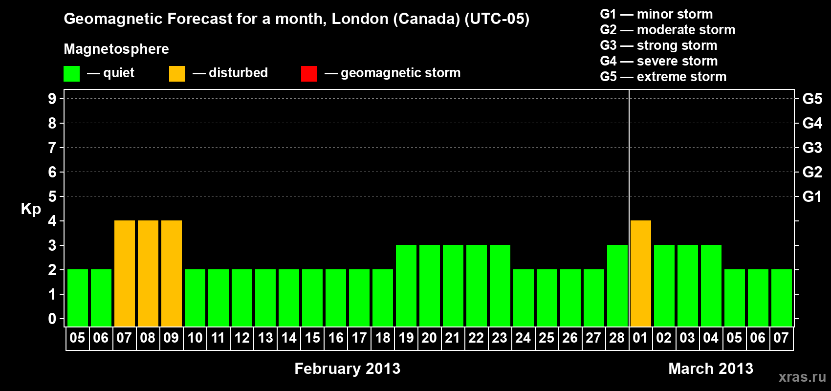 Geomagnetic storm forecast in London (Canada) for Feb 05, 2013