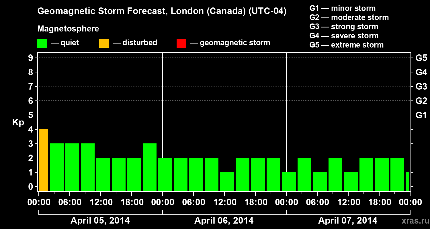 Geomagnetic storm forecast in London (Canada) for Apr 05, 2014