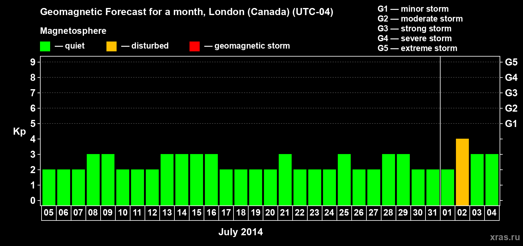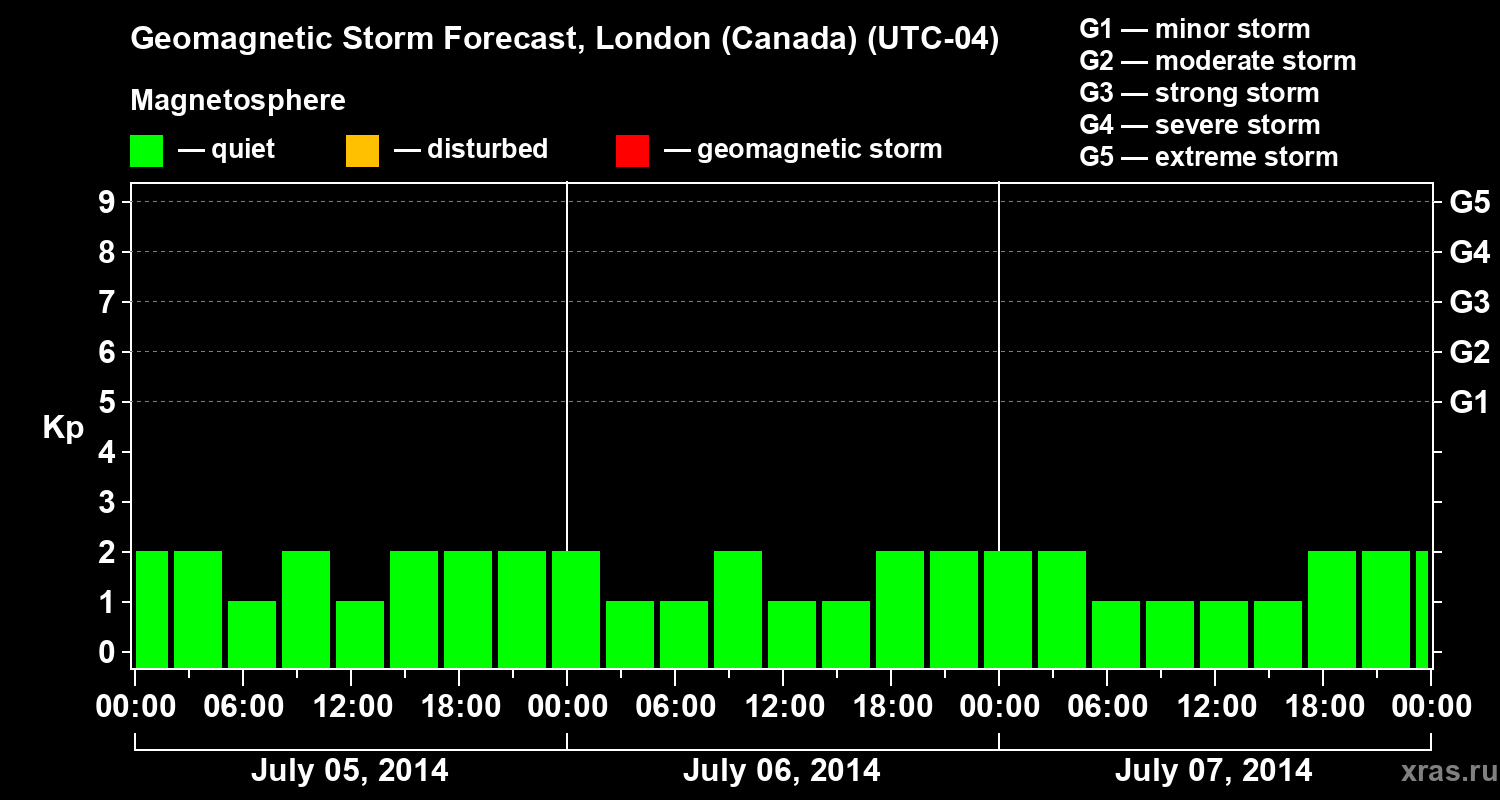 Geomagnetic storm forecast in London (Canada) for Jul 05, 2014