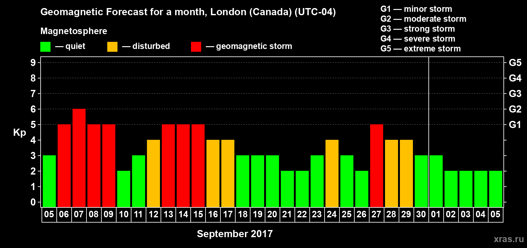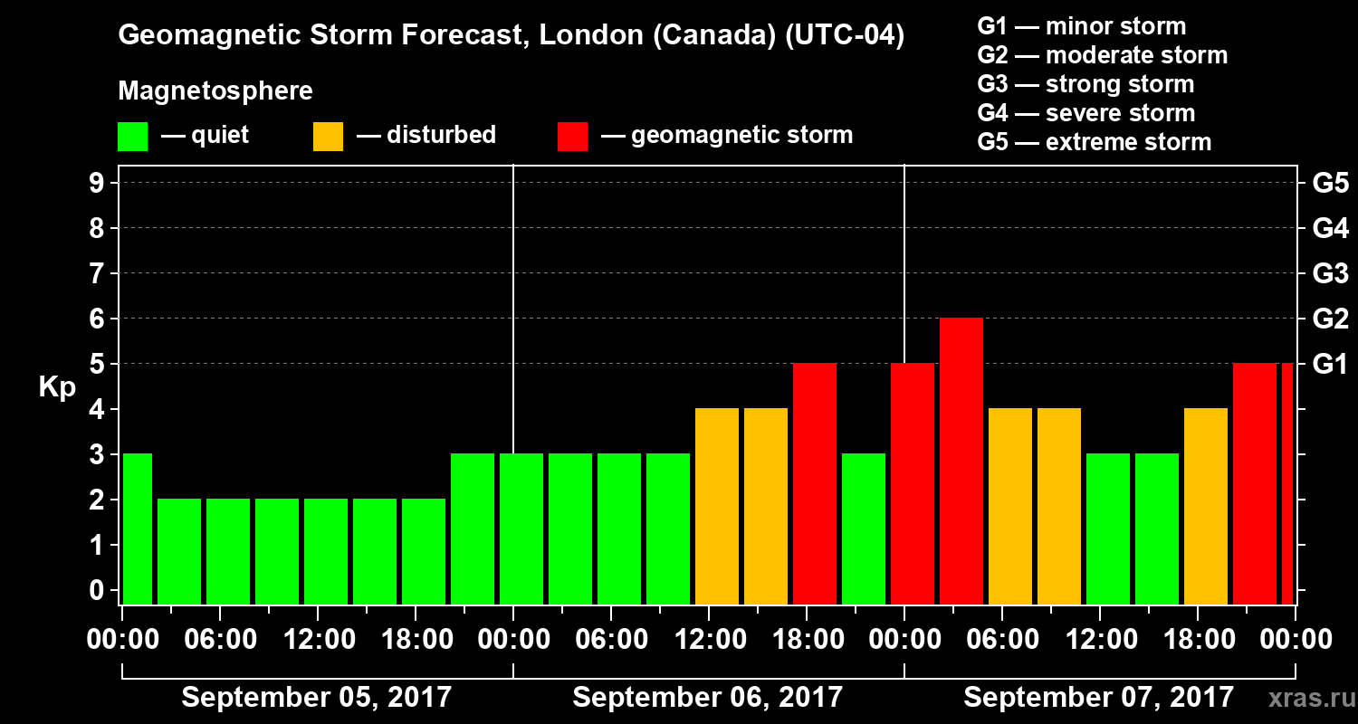 Geomagnetic storm forecast in London (Canada) for Sep 05, 2017