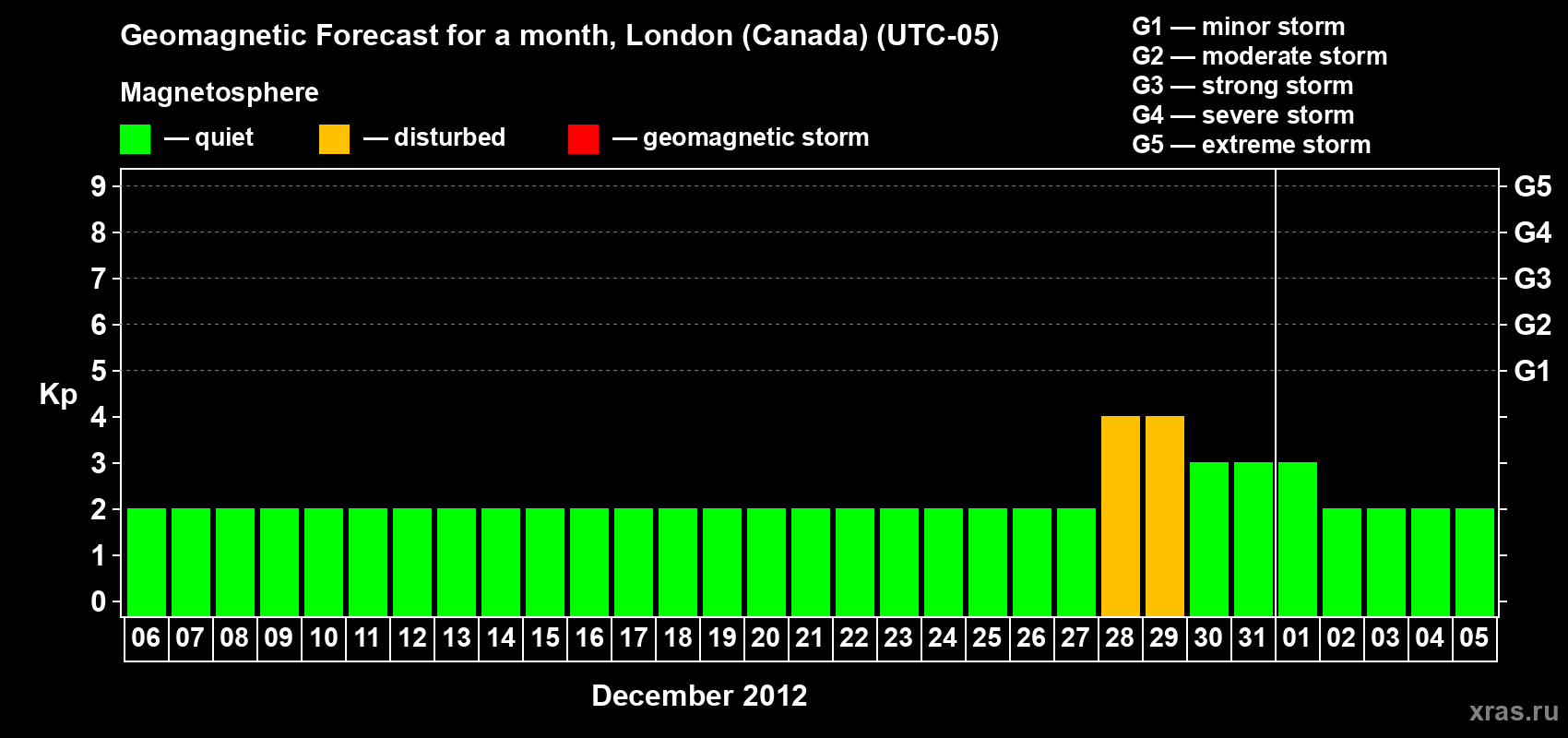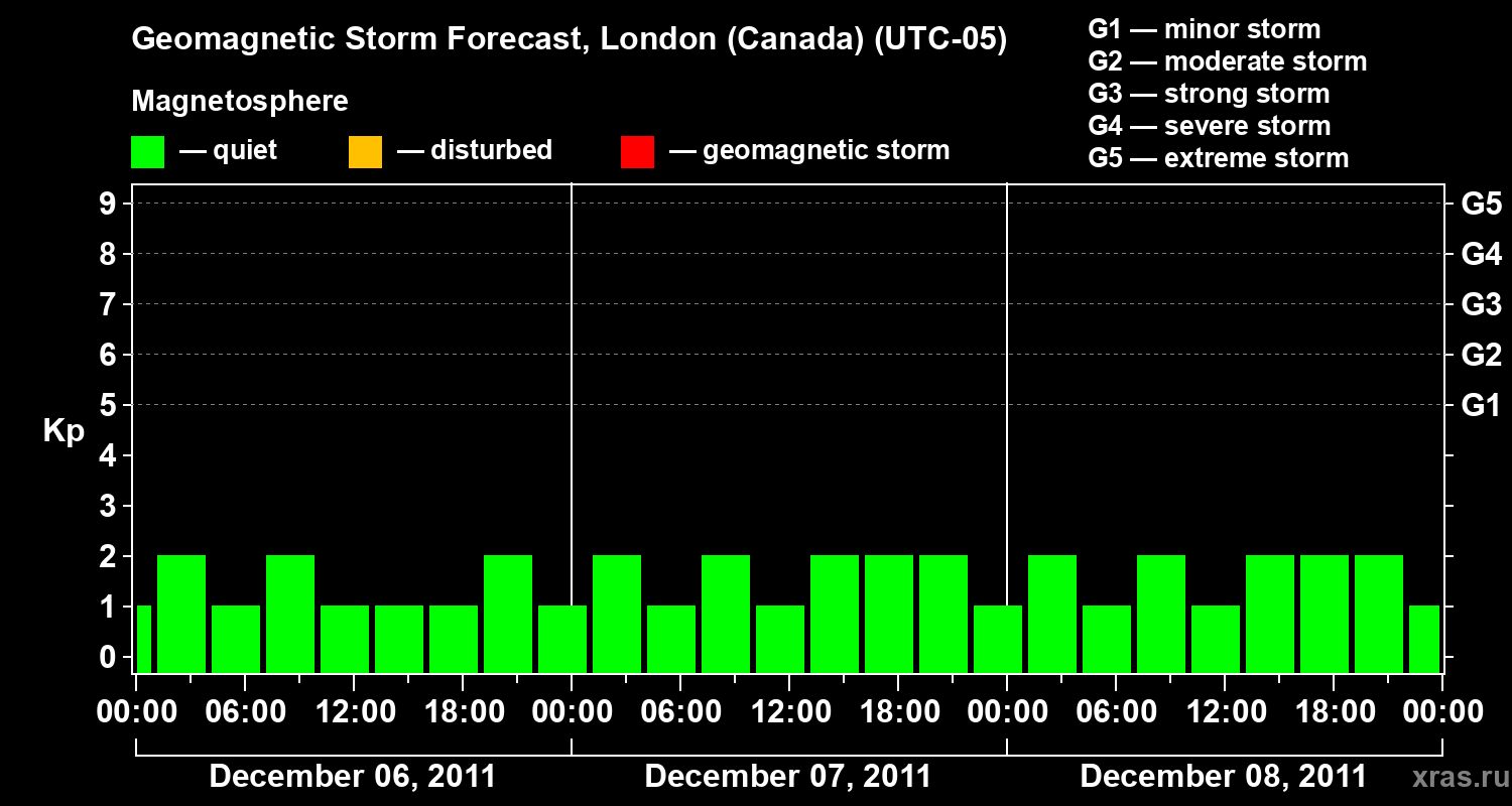 Geomagnetic storm forecast in London (Canada) for Dec 06, 2011