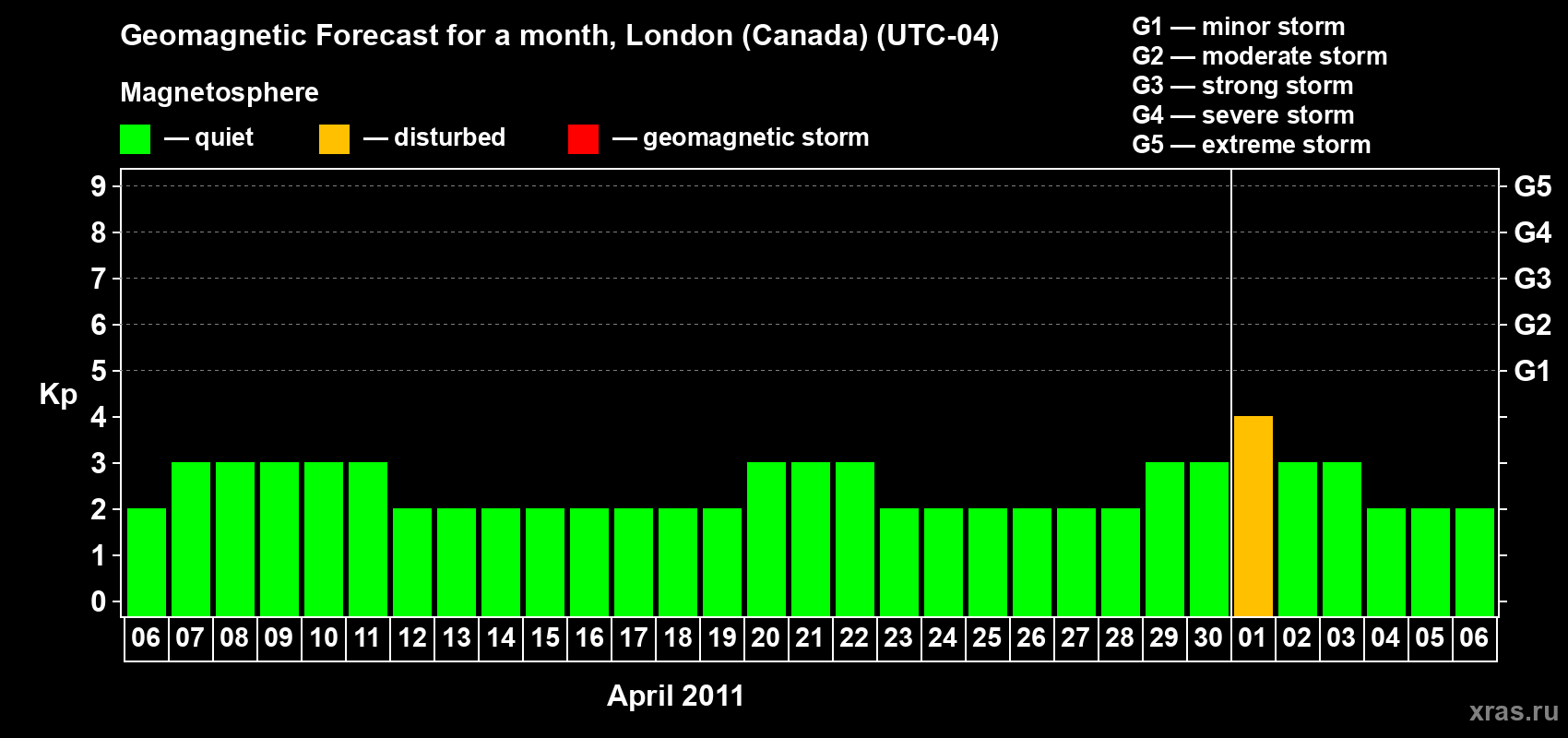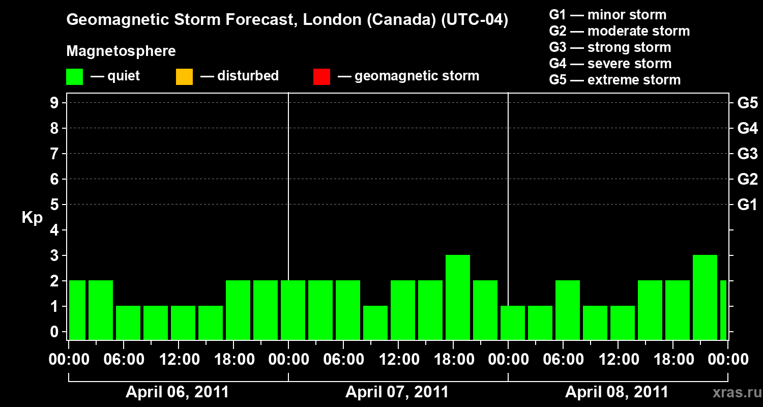 Geomagnetic storm forecast in London (Canada) for Apr 06, 2011
