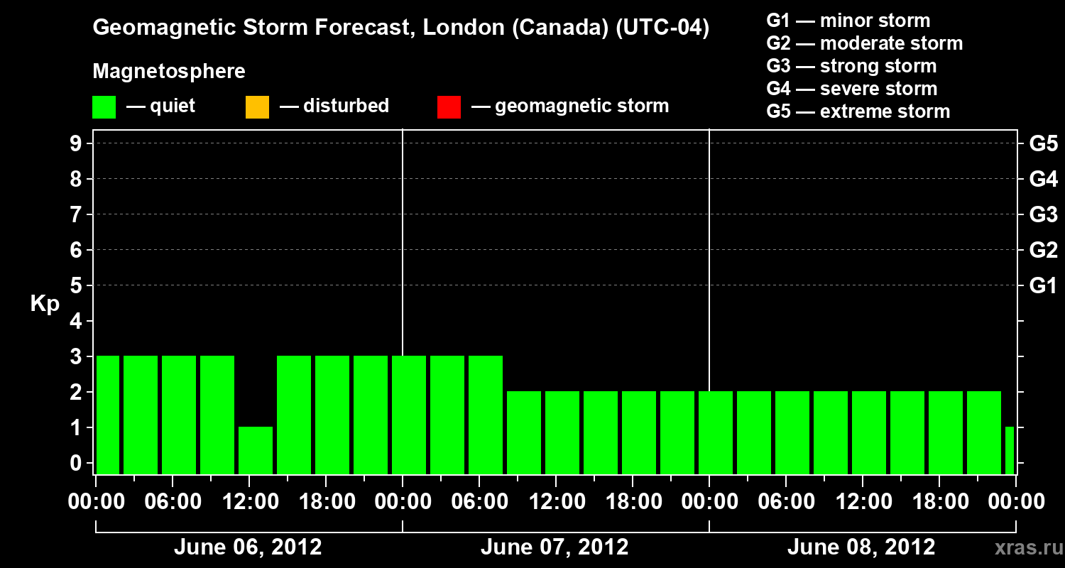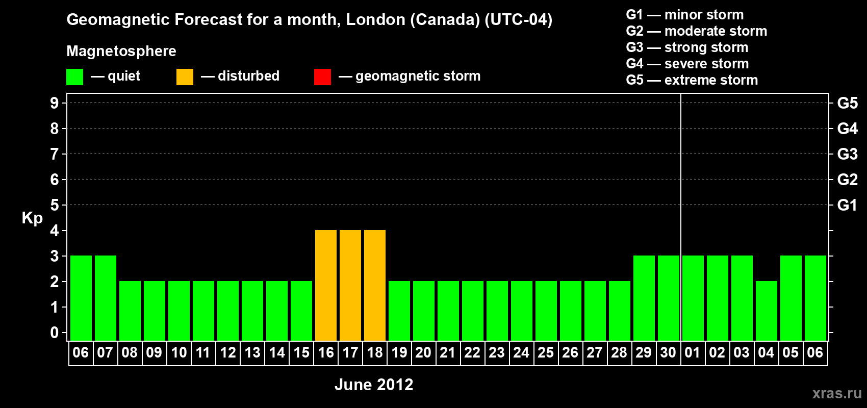 Geomagnetic storm forecast in London (Canada) for Jun 06, 2012