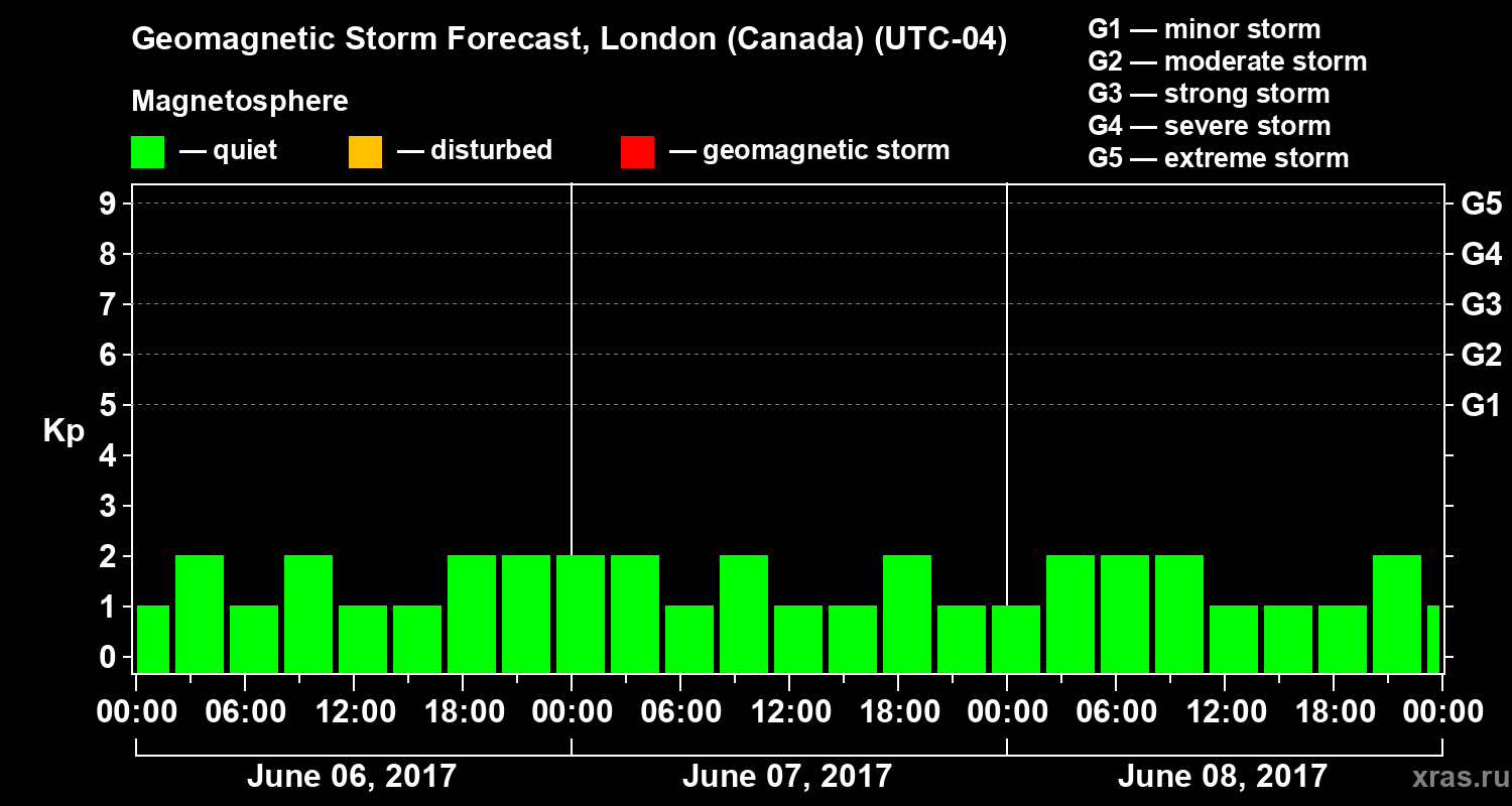 Geomagnetic storm forecast in London (Canada) for Jun 06, 2017
