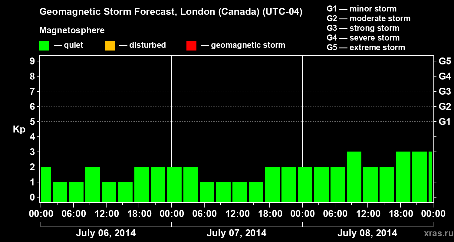 Geomagnetic storm forecast in London (Canada) for Jul 06, 2014