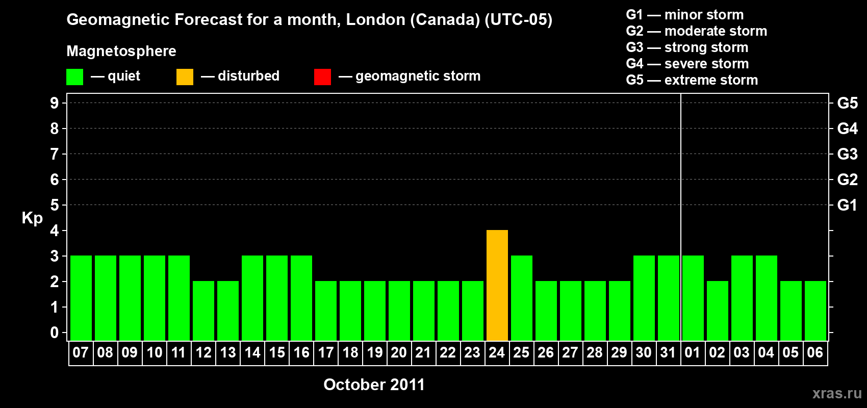 Geomagnetic storm forecast in London (Canada) for Oct 07, 2011