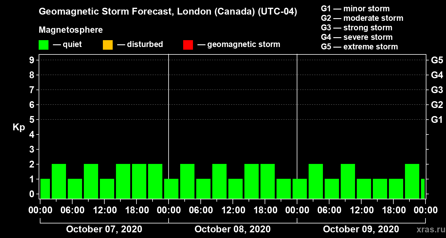 Geomagnetic activity forecast in London (Canada) — Oct 07, 2020