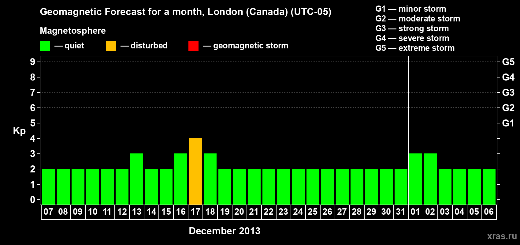 Geomagnetic storm forecast in London (Canada) for Dec 07, 2012