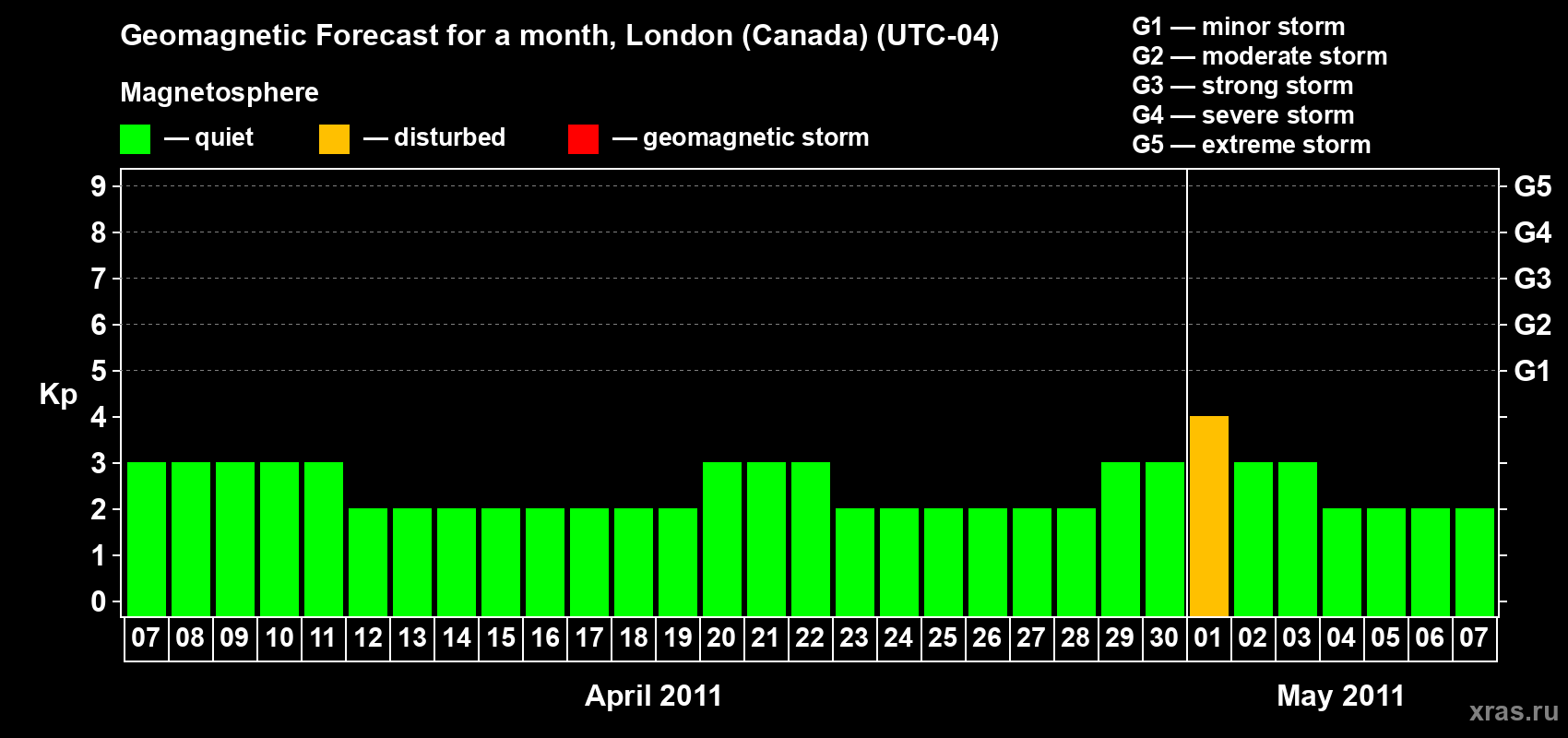 Geomagnetic storm forecast in London (Canada) for Apr 07, 2011