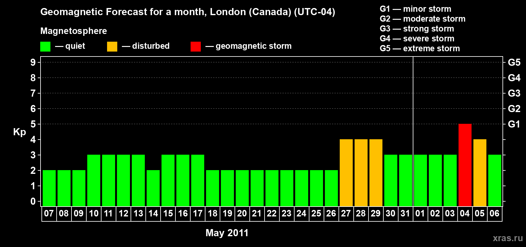 Geomagnetic storm forecast in London (Canada) for May 07, 2011