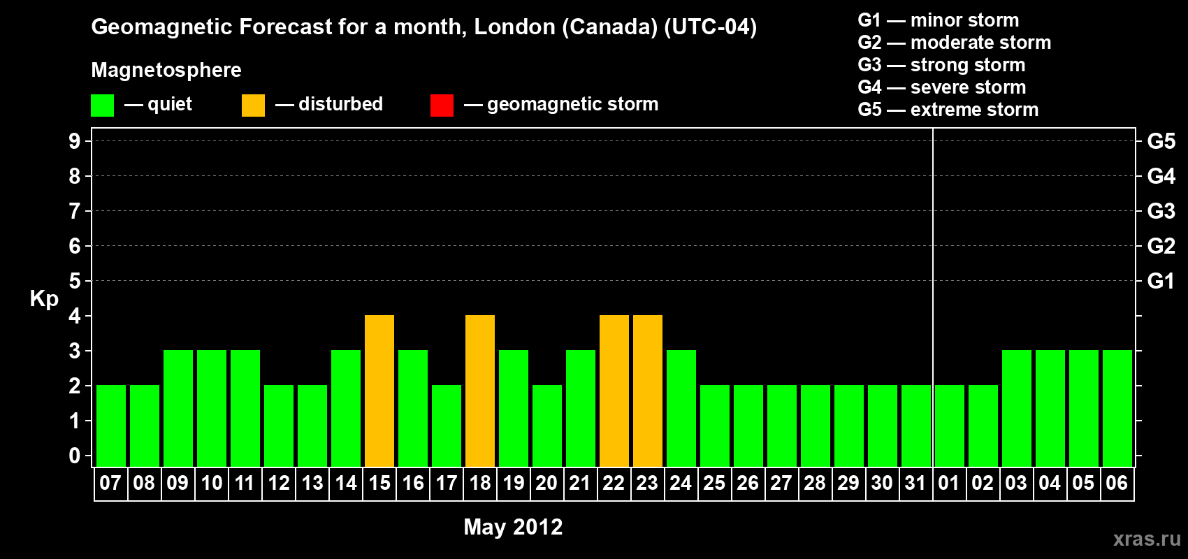 Geomagnetic storm forecast in London (Canada) for May 07, 2012