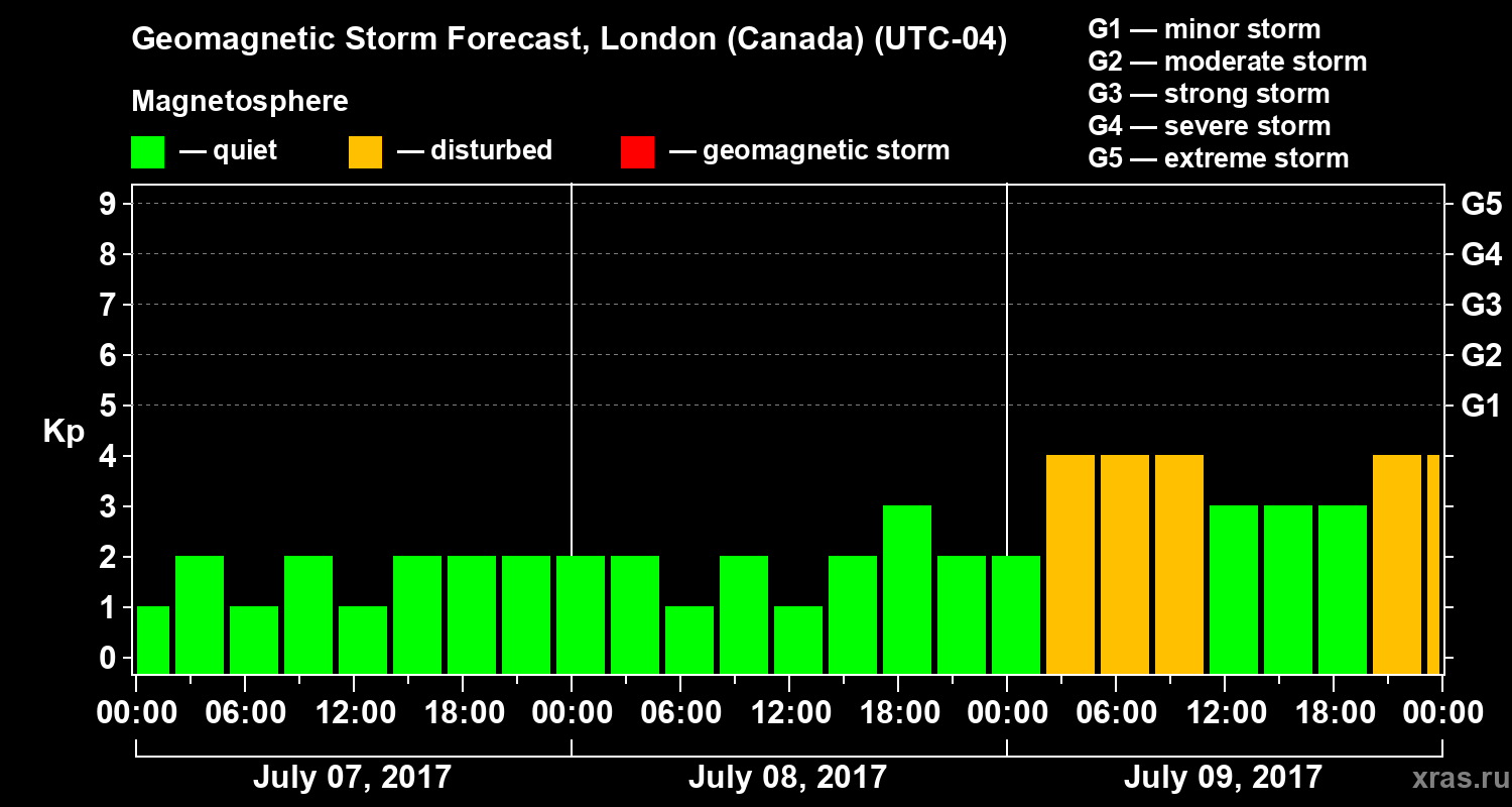 Geomagnetic storm forecast in London (Canada) for Jul 07, 2017