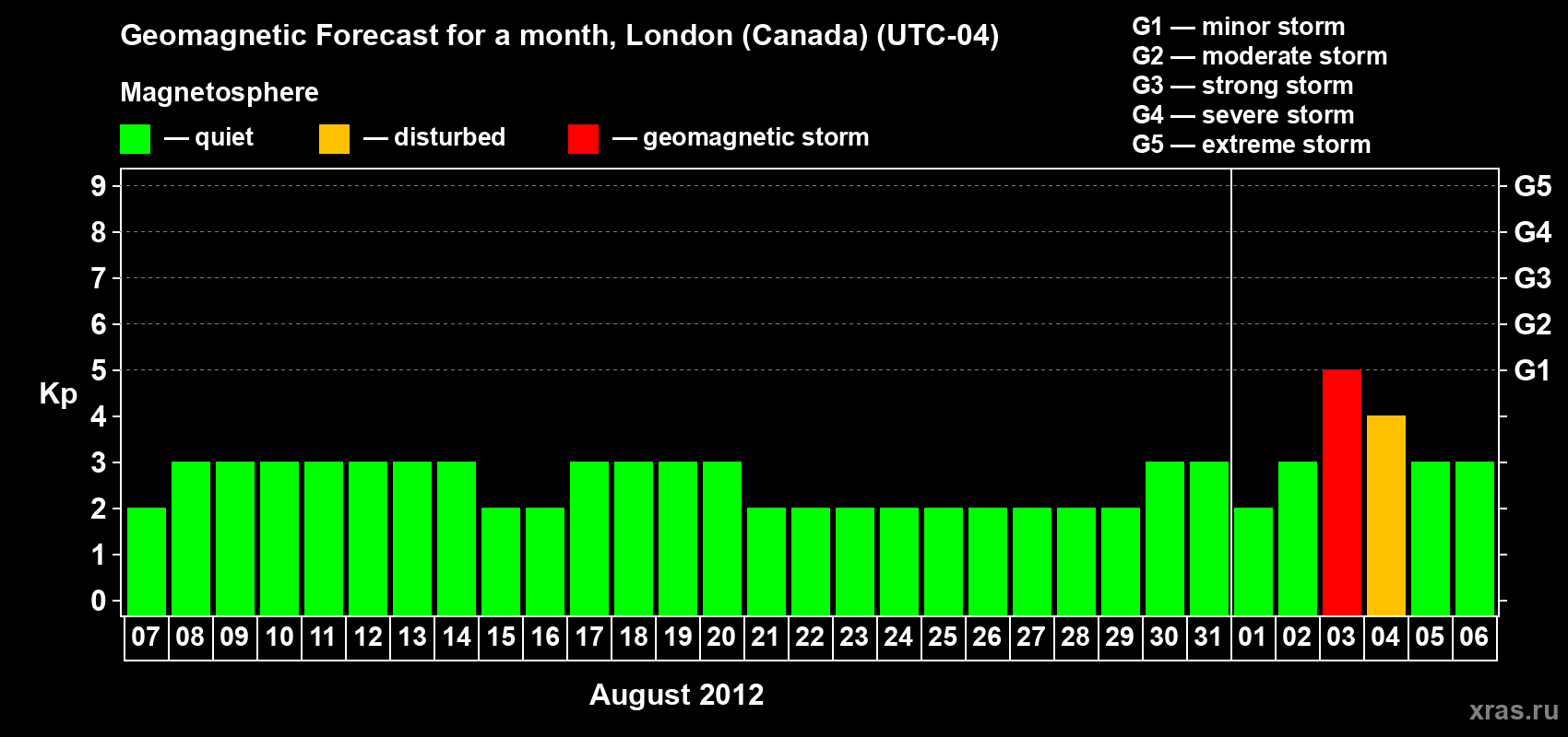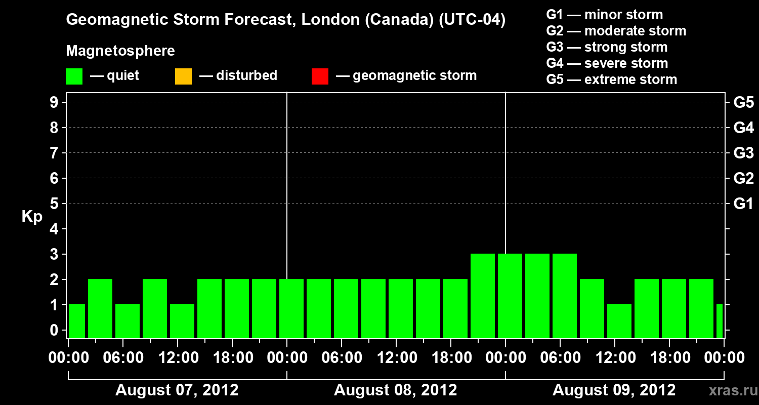 Geomagnetic storm forecast in London (Canada) for Aug 07, 2012