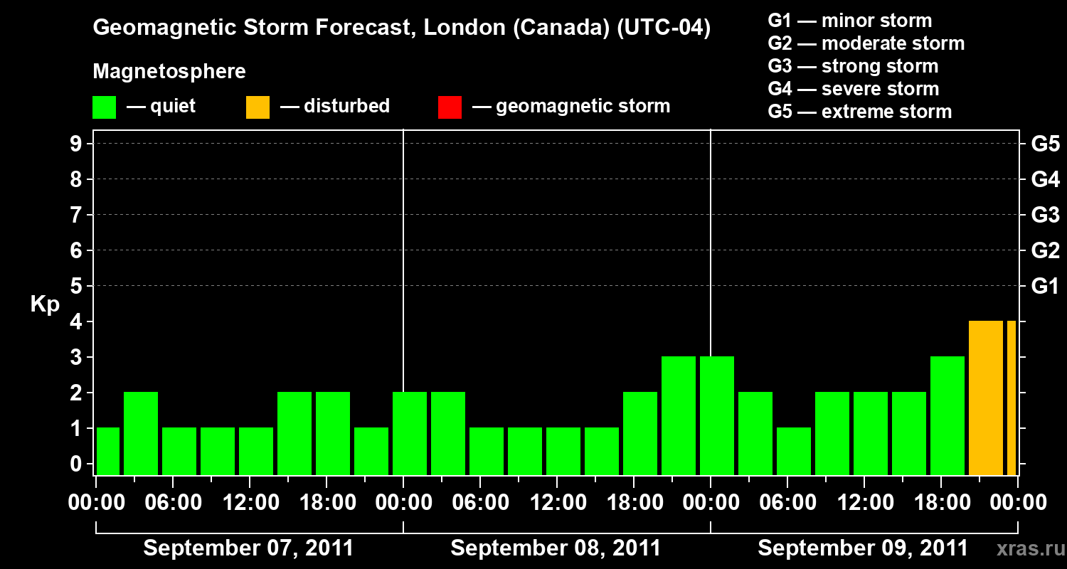 Geomagnetic storm forecast in London (Canada) for Sep 07, 2011