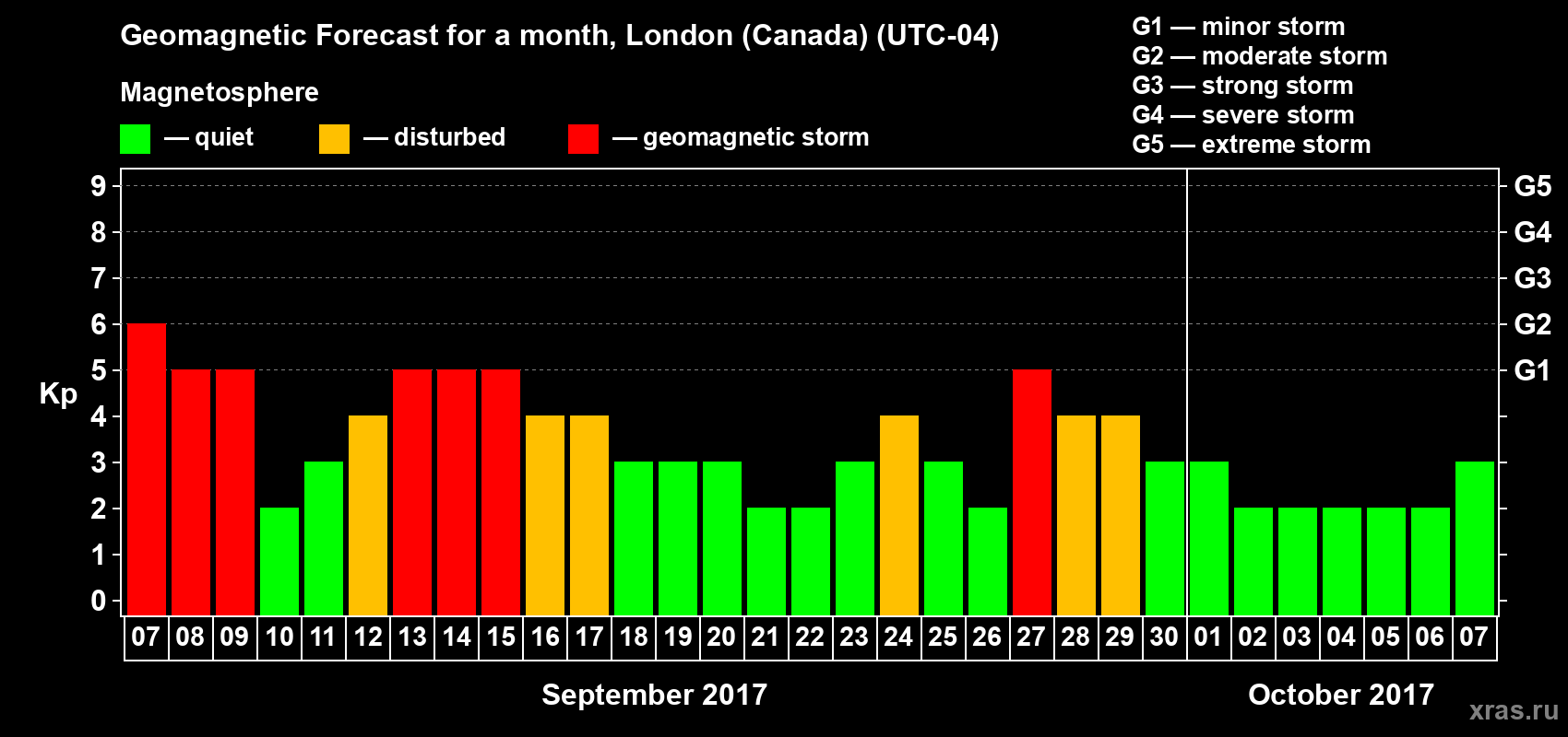 Geomagnetic storm forecast in London (Canada) for Sep 07, 2017