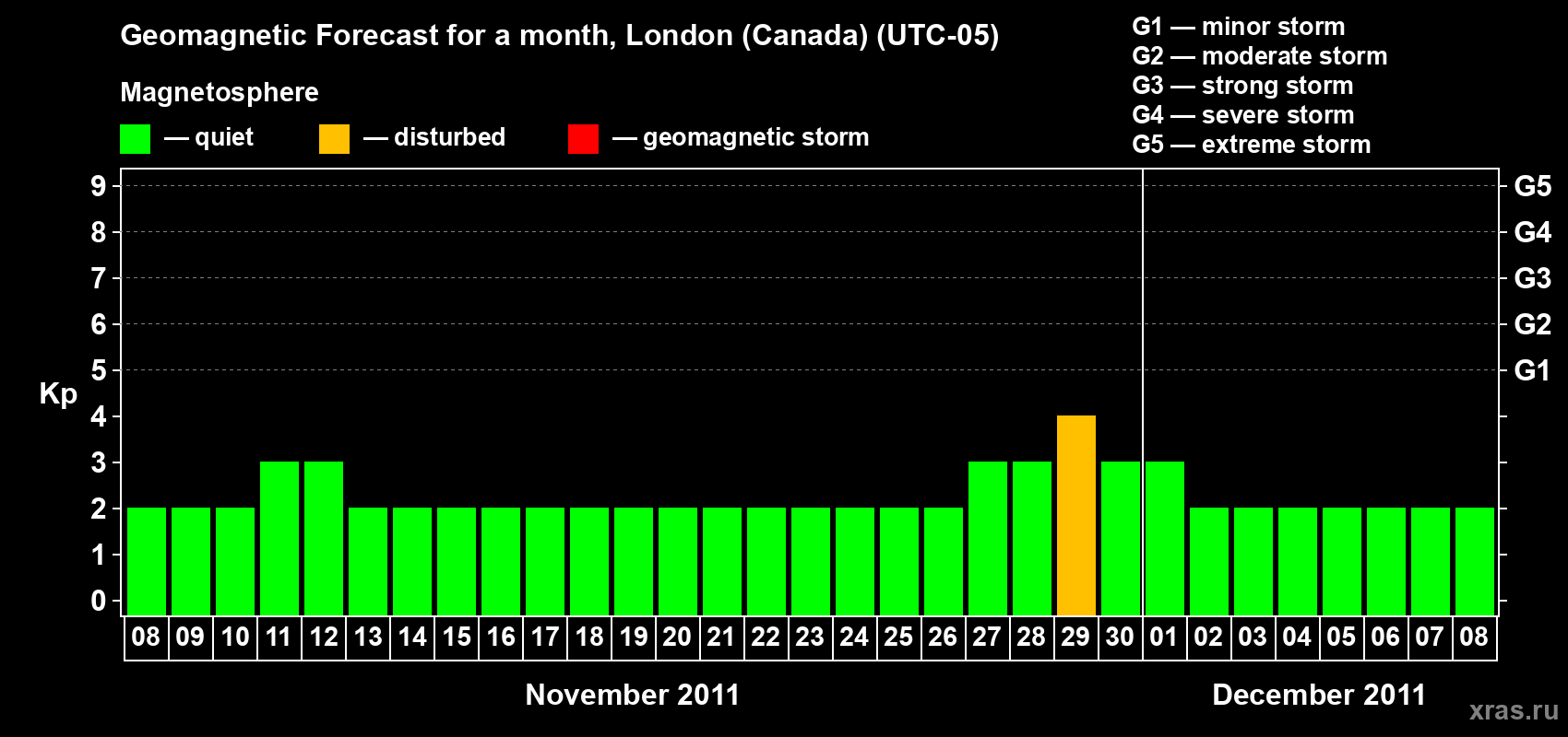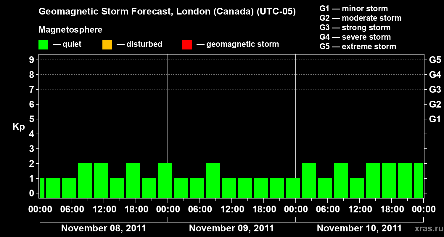 Geomagnetic storm forecast in London (Canada) for Nov 08, 2011