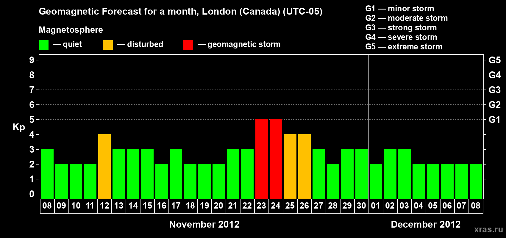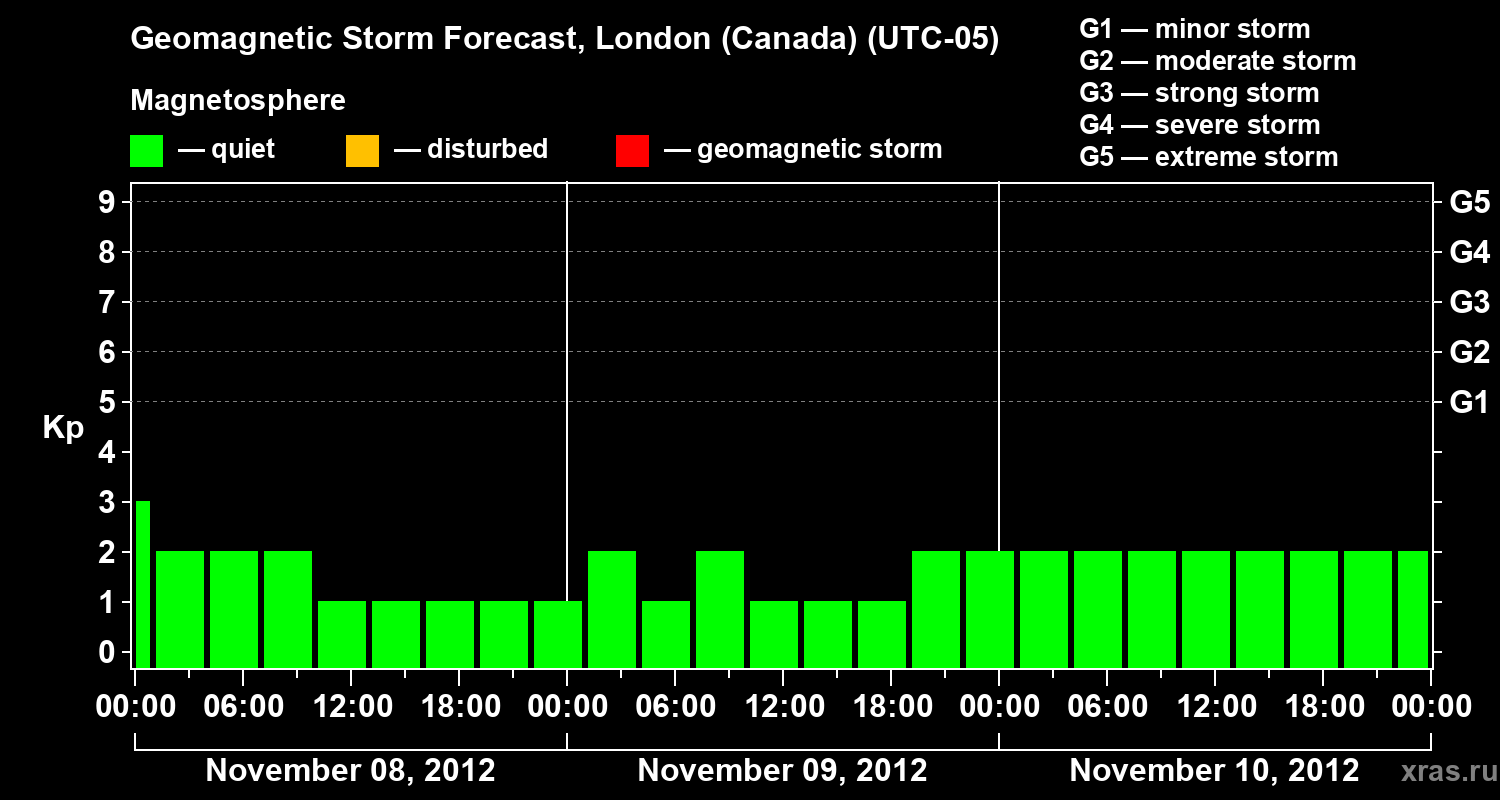 Geomagnetic storm forecast in London (Canada) for Nov 08, 2012