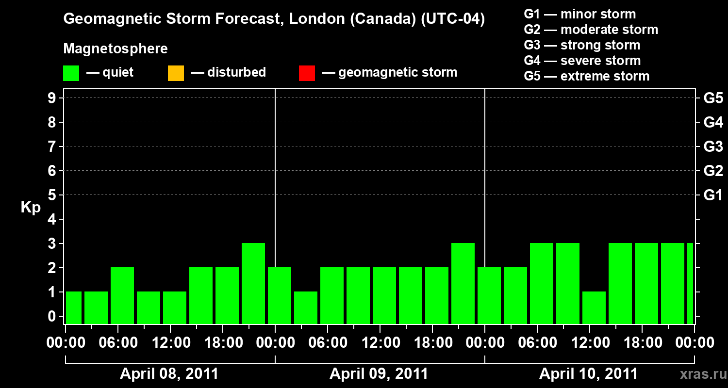 Geomagnetic storm forecast in London (Canada) for Apr 08, 2011