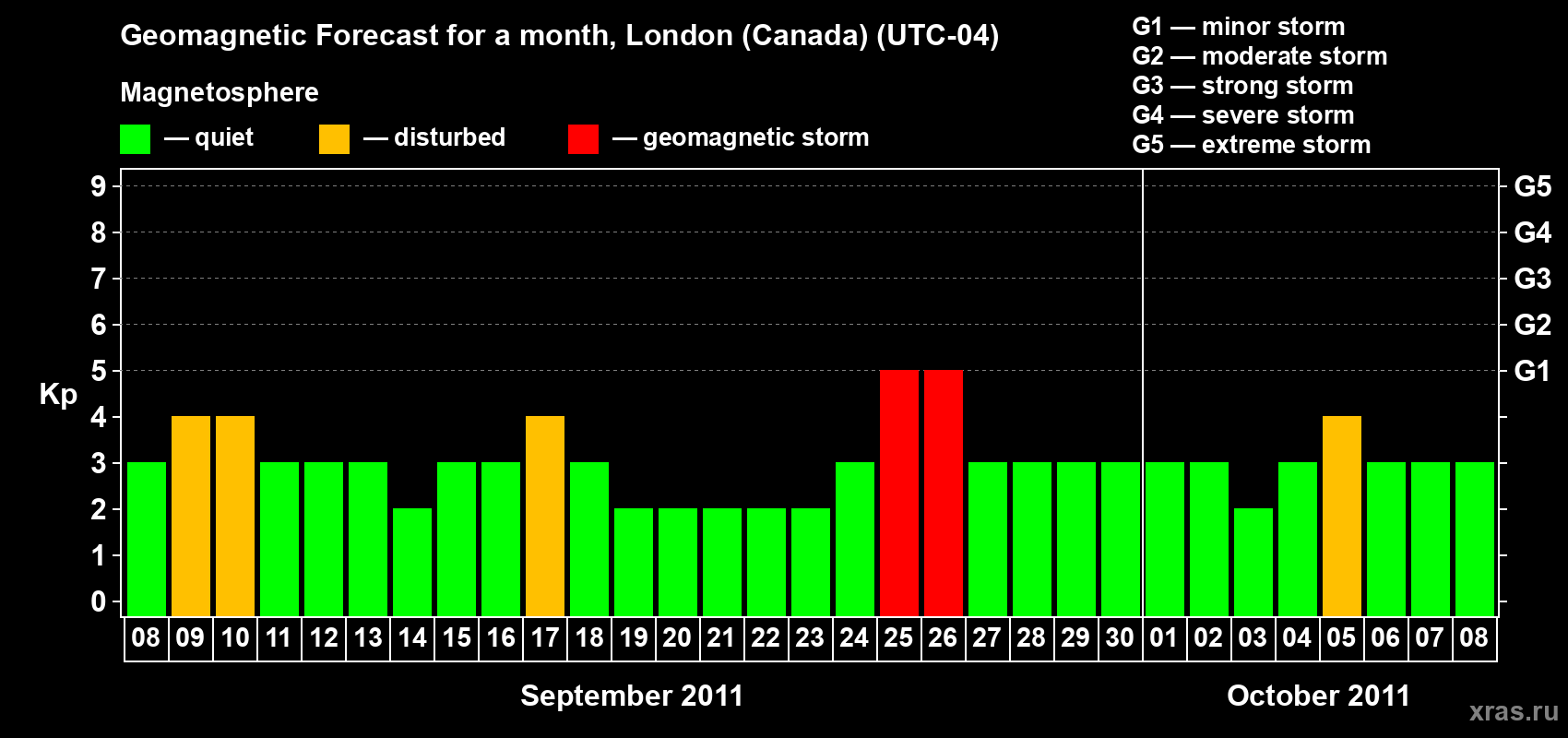 Geomagnetic storm forecast in London (Canada) for Sep 08, 2011
