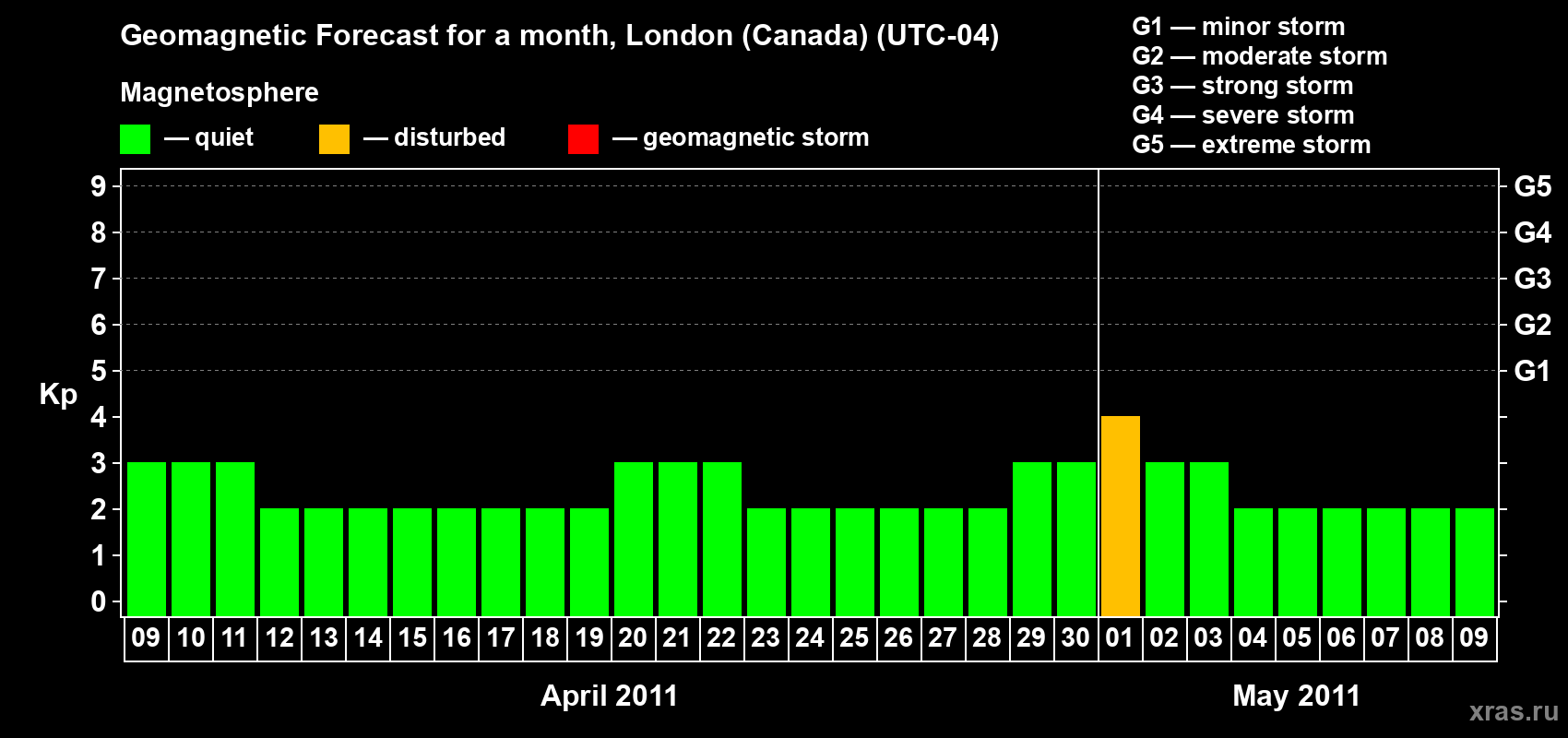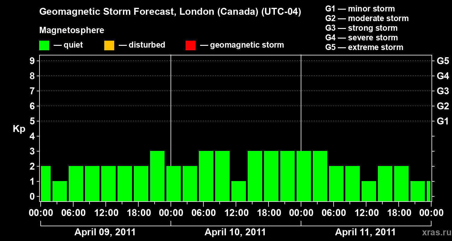 Geomagnetic storm forecast in London (Canada) for Apr 09, 2011