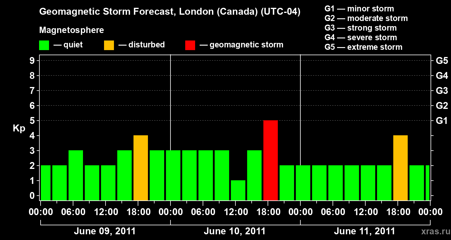 Geomagnetic storm forecast in London (Canada) for Jun 09, 2011