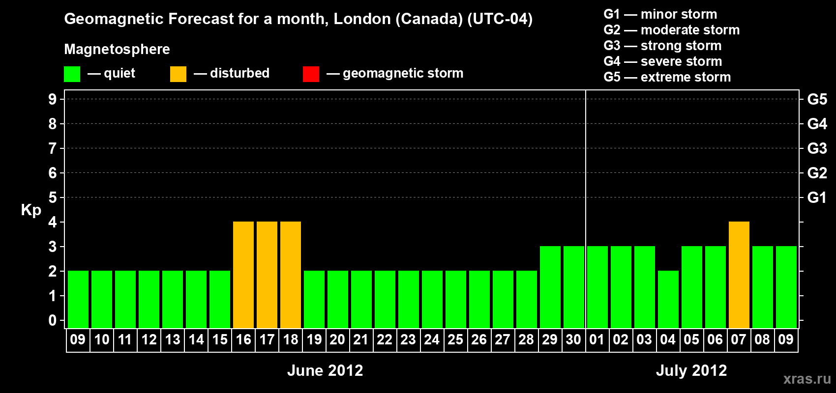 Geomagnetic storm forecast in London (Canada) for Jun 09, 2012
