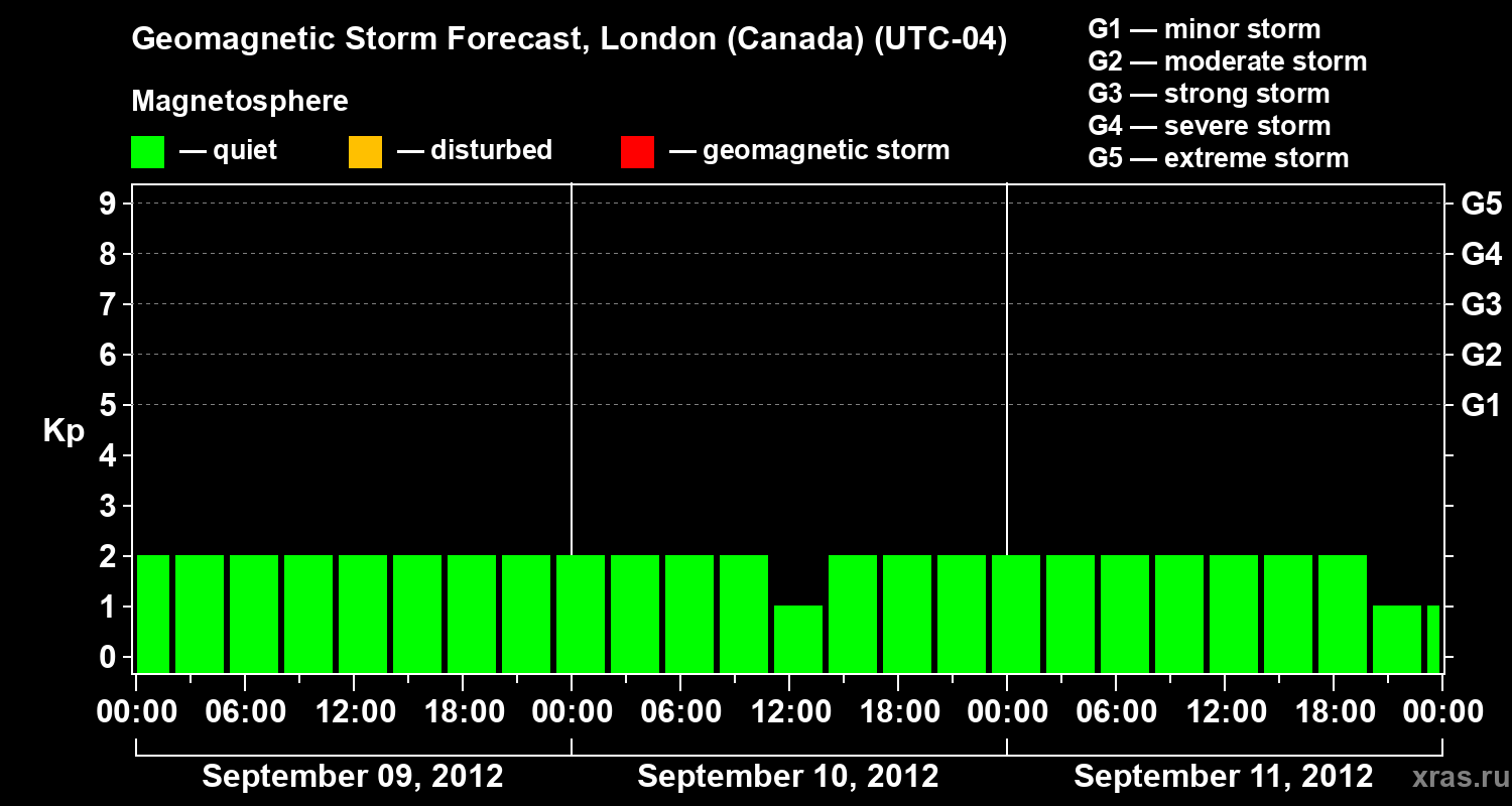 Geomagnetic storm forecast in London (Canada) for Sep 09, 2012