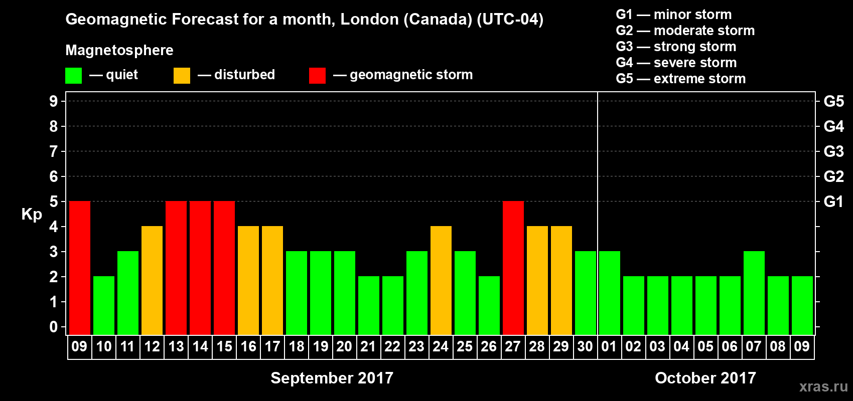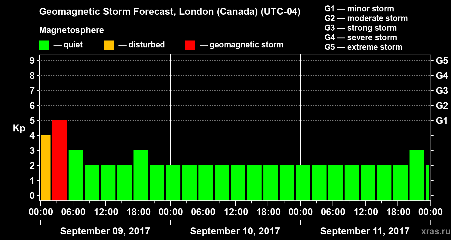 Geomagnetic storm forecast in London (Canada) for Sep 09, 2017