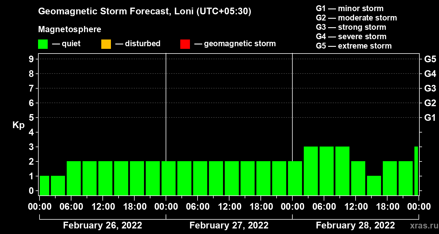 Geomagnetic activity forecast in Loni — Feb 26, 2022