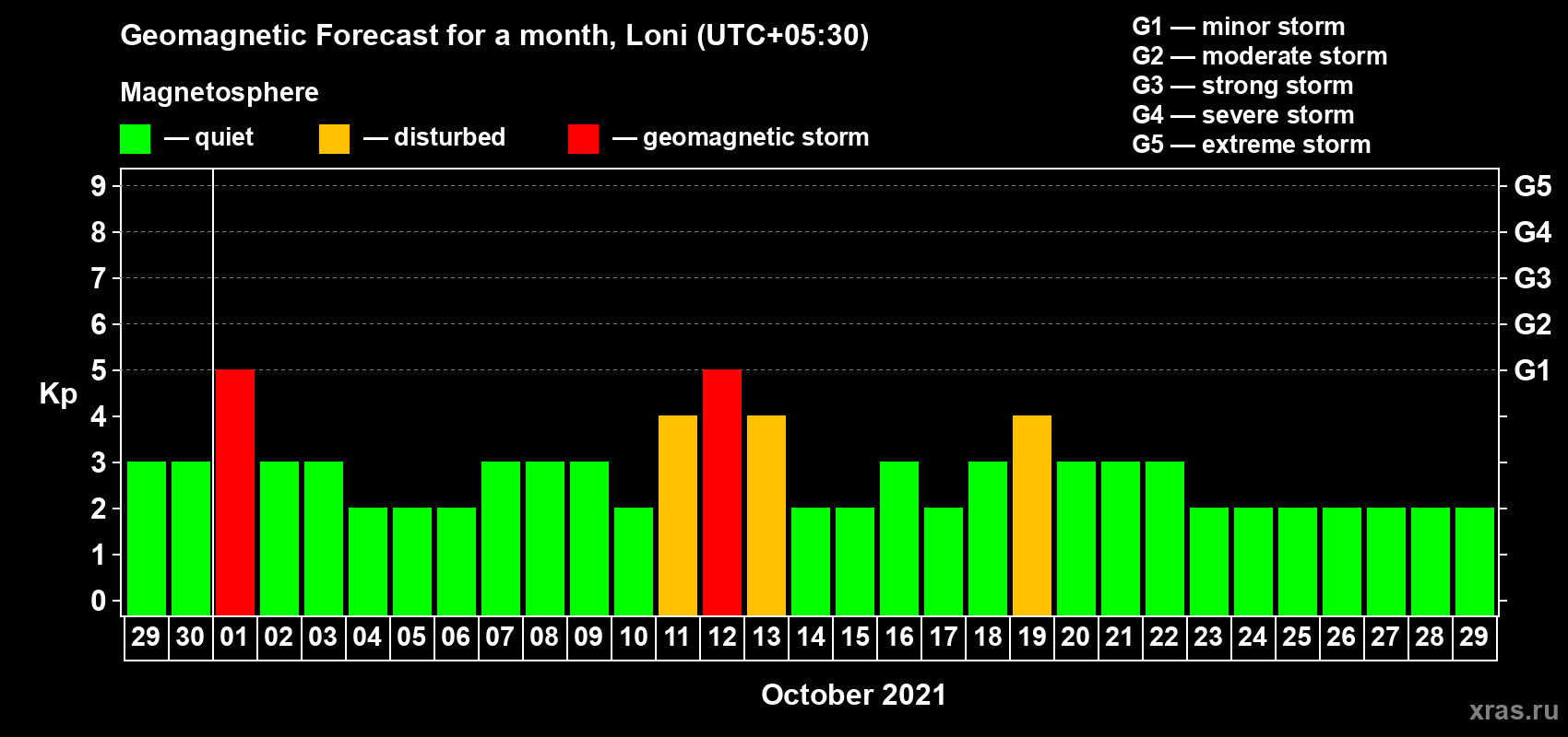 Geomagnetic storm forecast in Loni for Sep 29, 2021