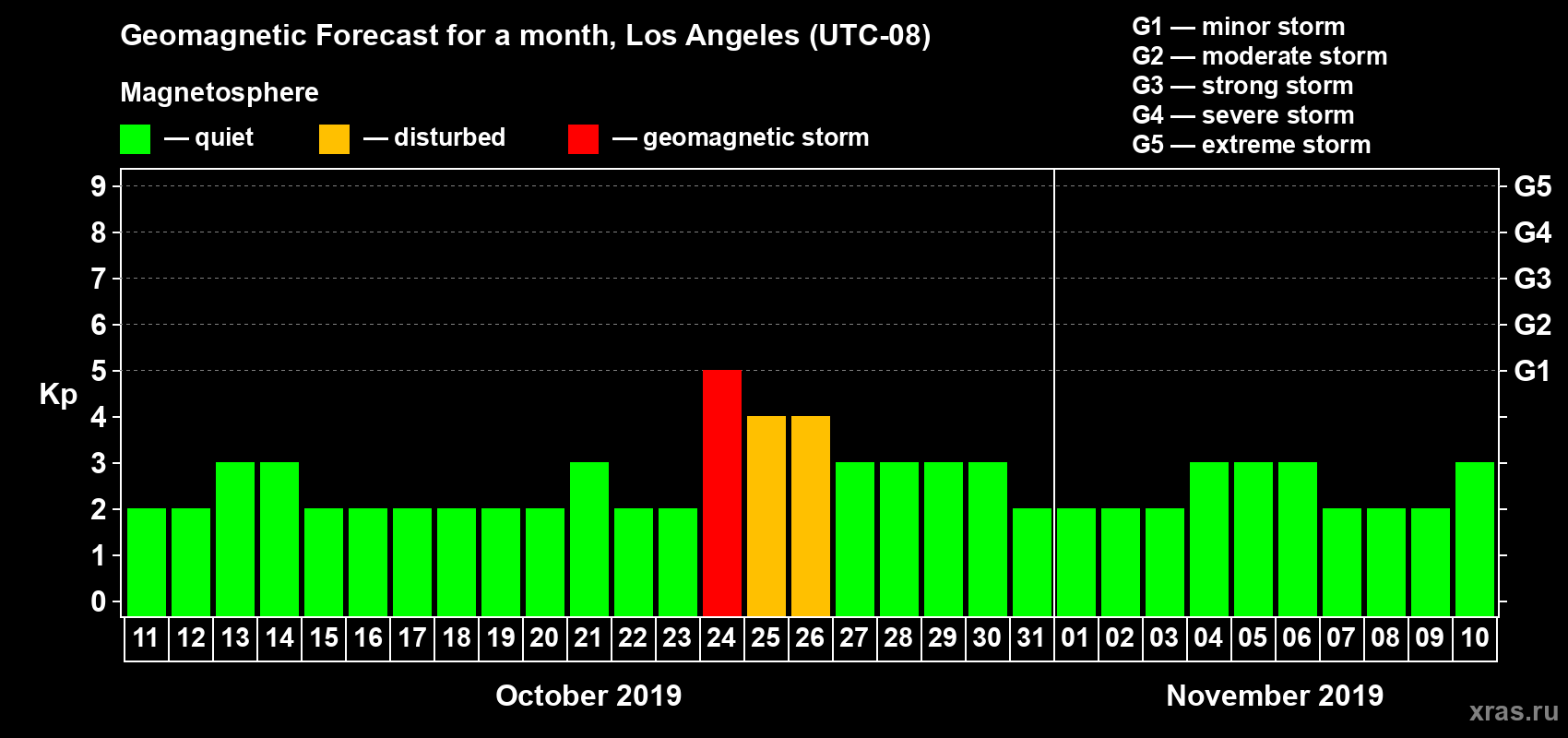 Geomagnetic storm forecast in Los Angeles for Oct 11, 2019