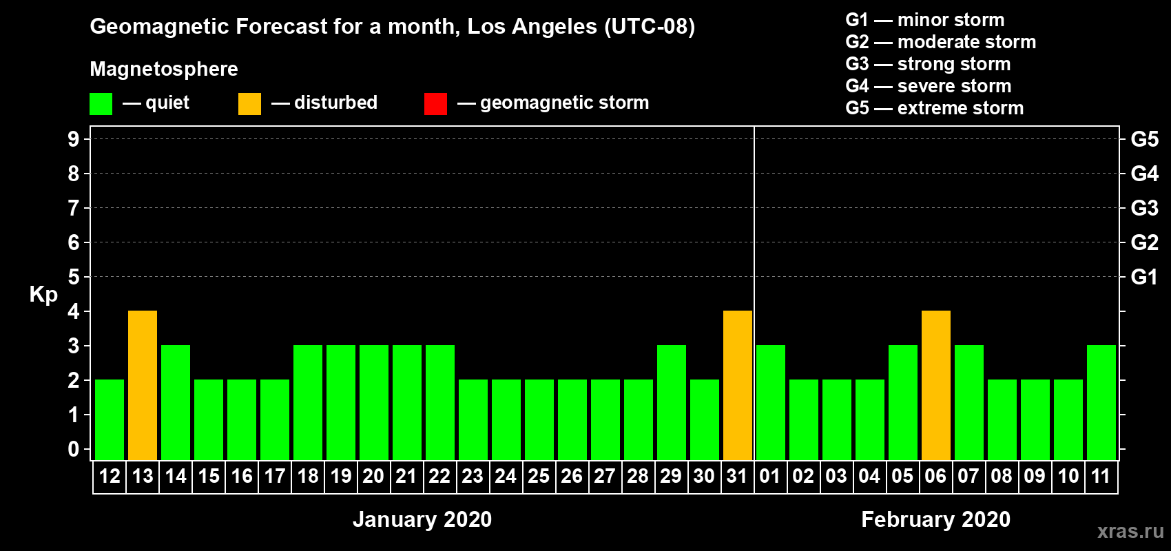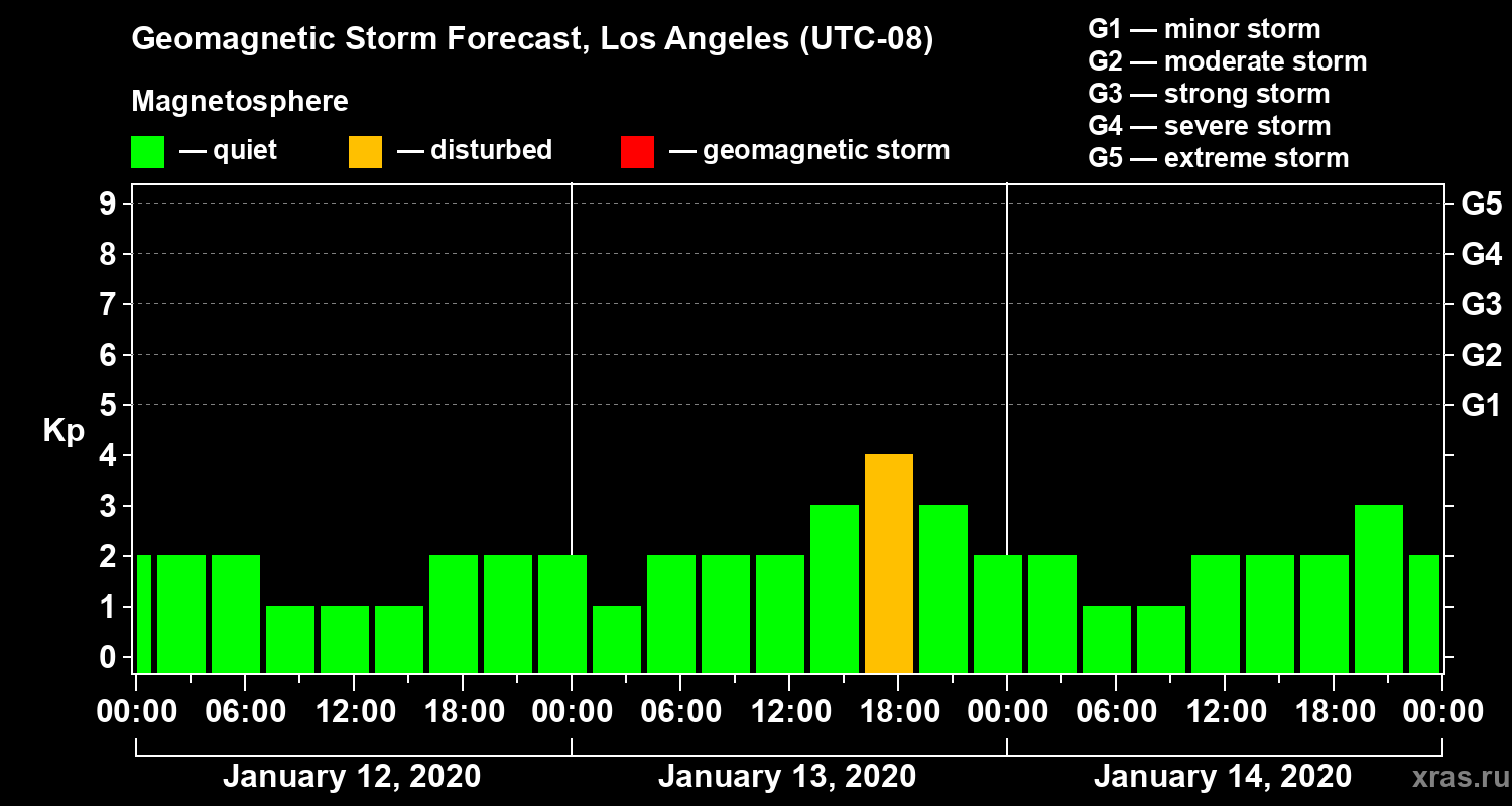Geomagnetic storm forecast in Los Angeles for Jan 12, 2020