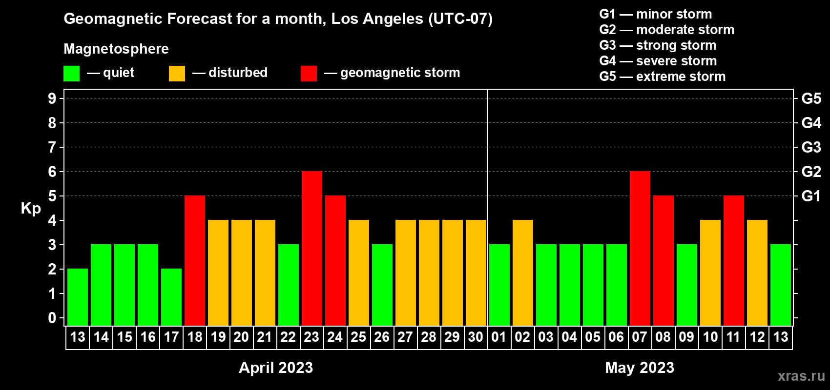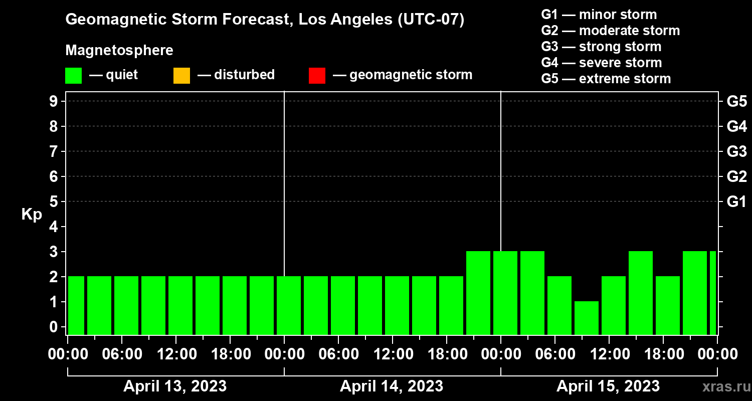 Geomagnetic storm forecast in Los Angeles for Apr 13, 2023