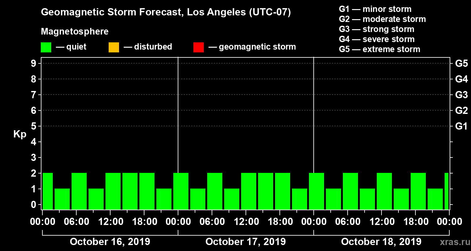 Geomagnetic storm forecast in Los Angeles for Oct 16, 2019