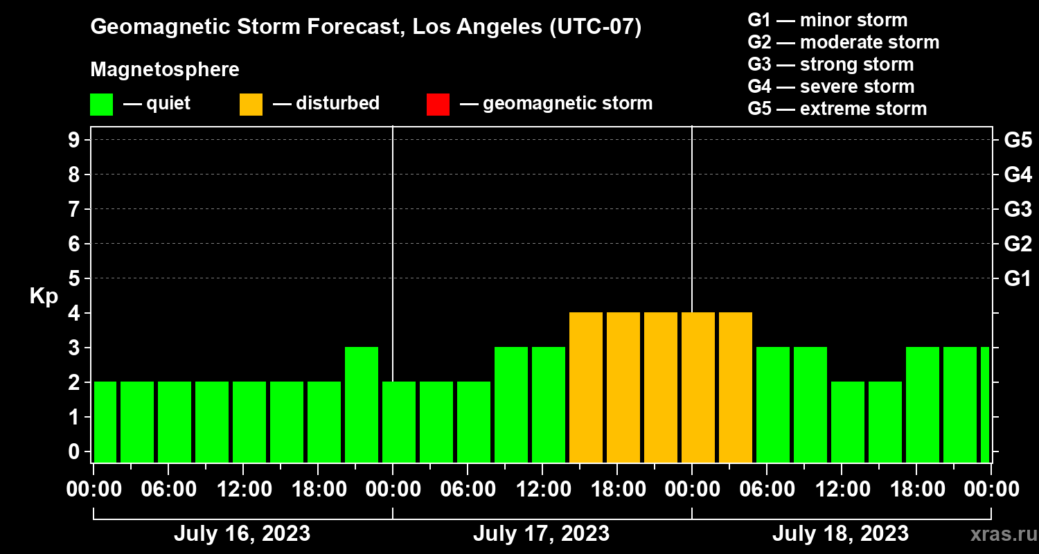 Geomagnetic storm forecast in Los Angeles for Jul 16, 2023