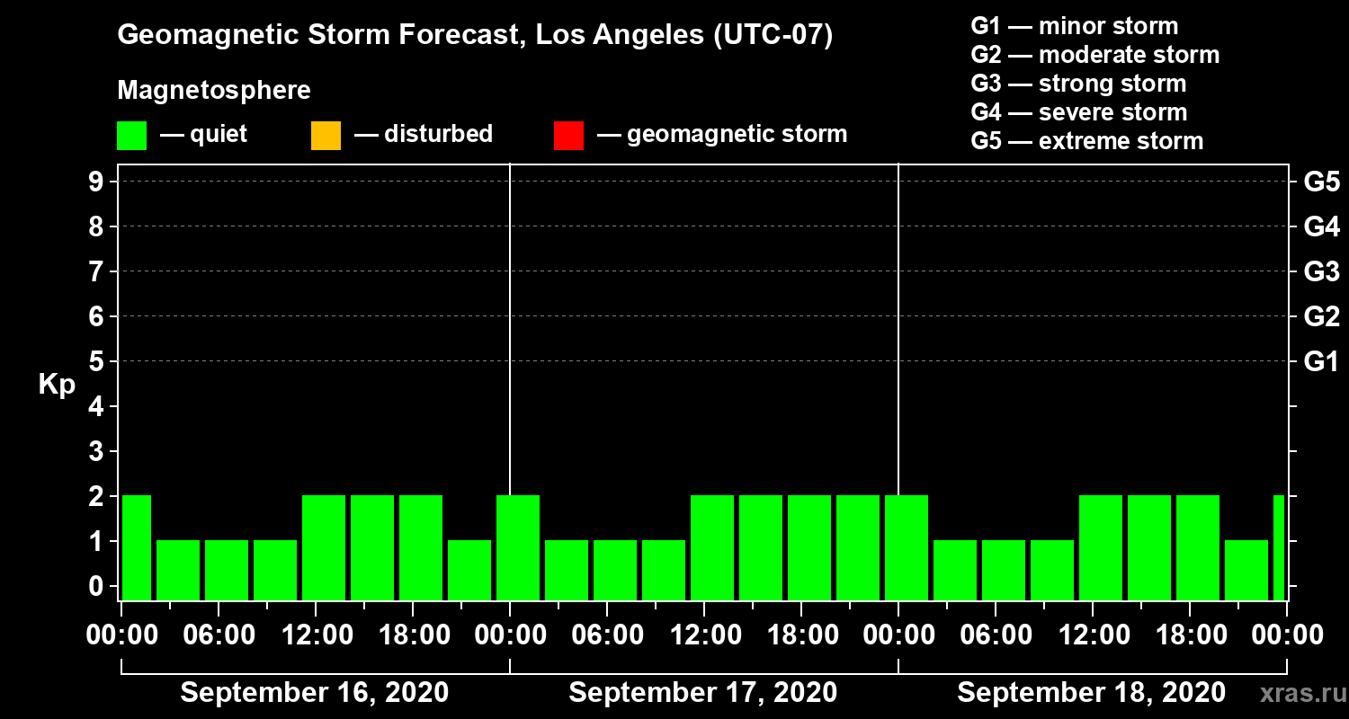 Geomagnetic storm forecast in Los Angeles for Sep 16, 2020