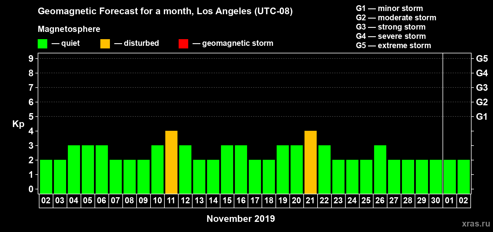 Geomagnetic storm forecast in Los Angeles for Nov 02, 2019