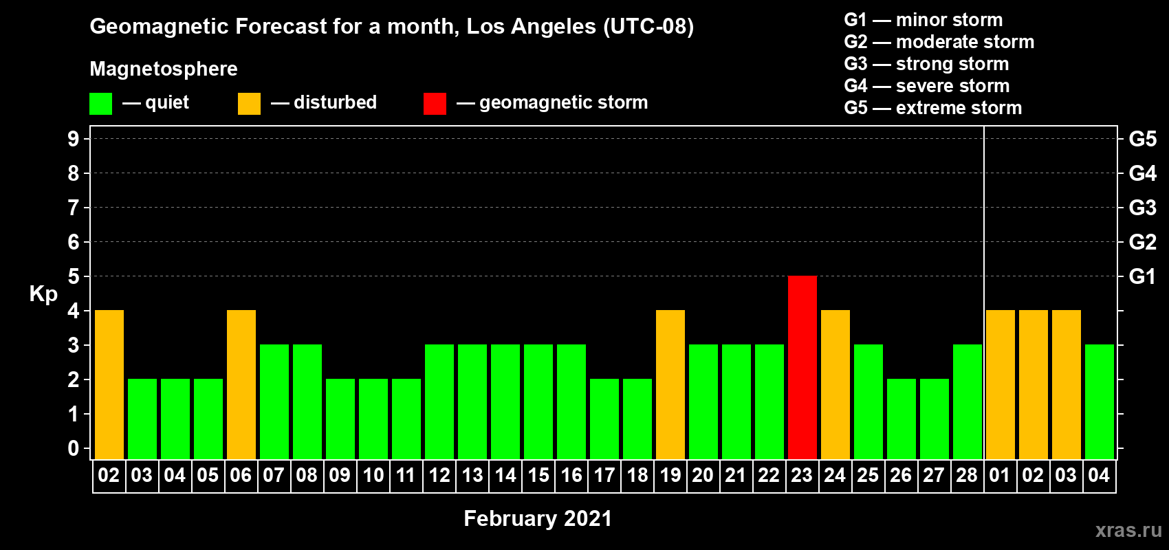Geomagnetic storm forecast in Los Angeles for Feb 02, 2021