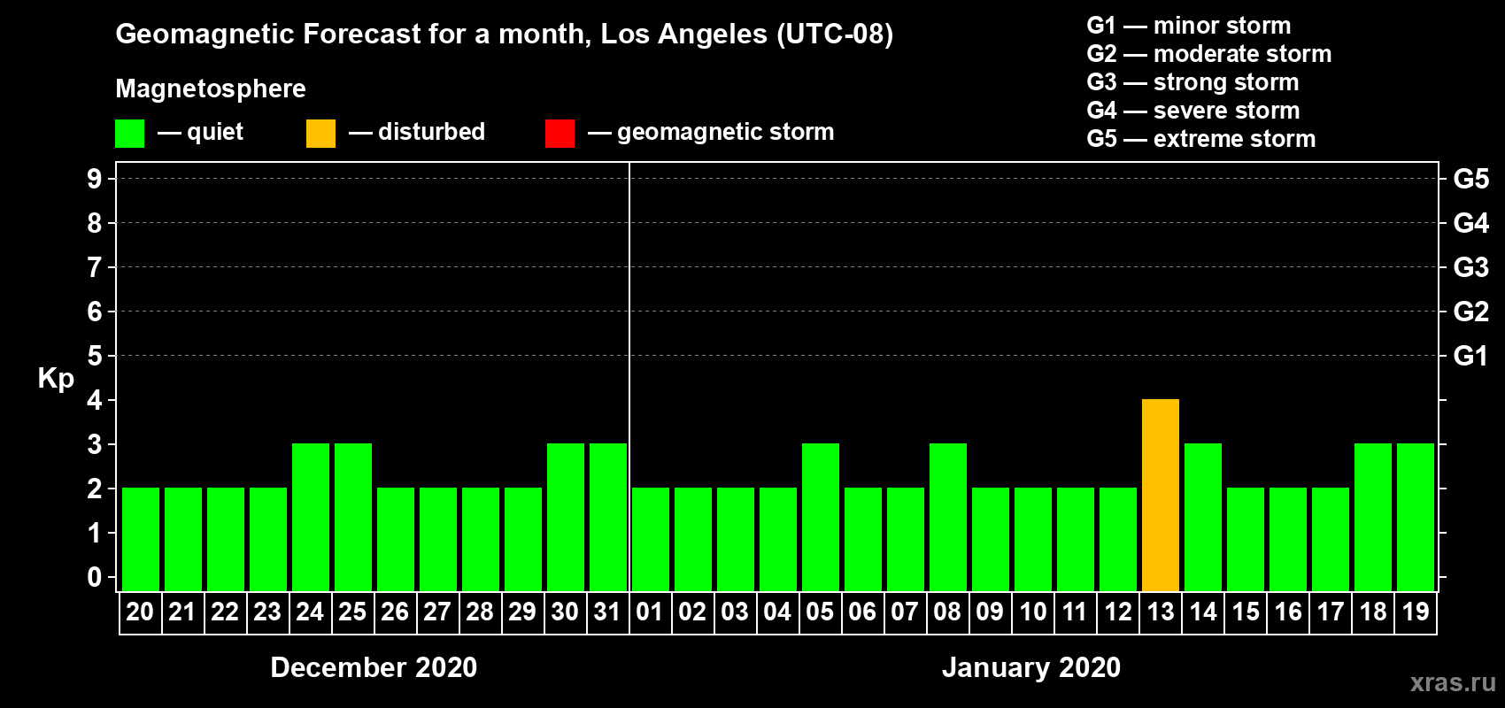 Geomagnetic activity forecast in Los Angeles — Dec 20, 2019