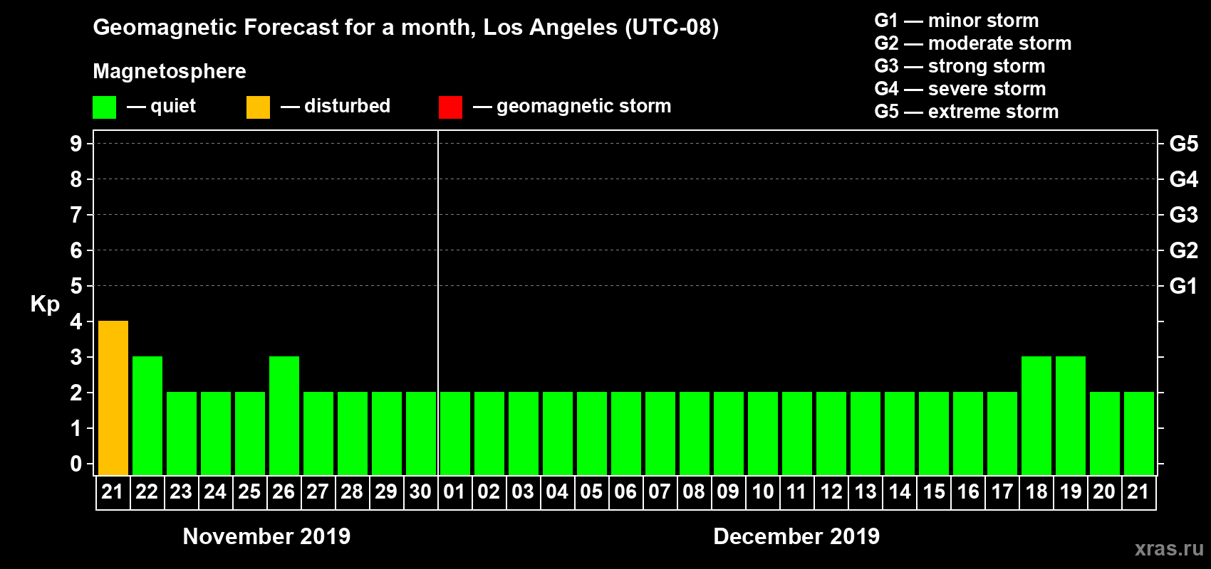Geomagnetic storm forecast in Los Angeles for Nov 21, 2019